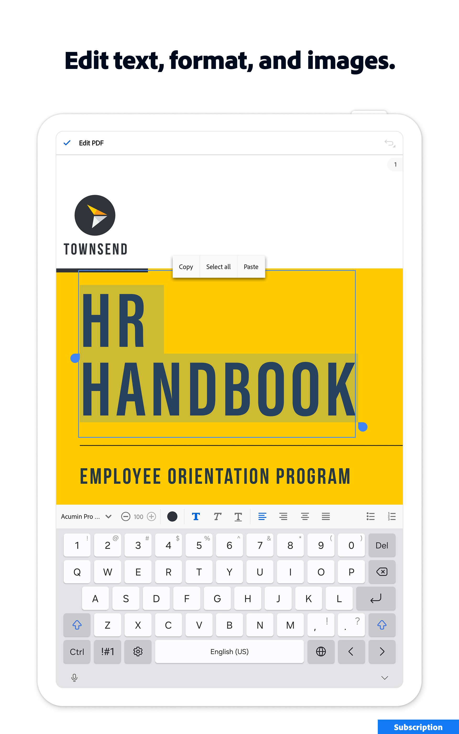 Subscribe now to access all these features and use Acrobat across mobile and web platforms.