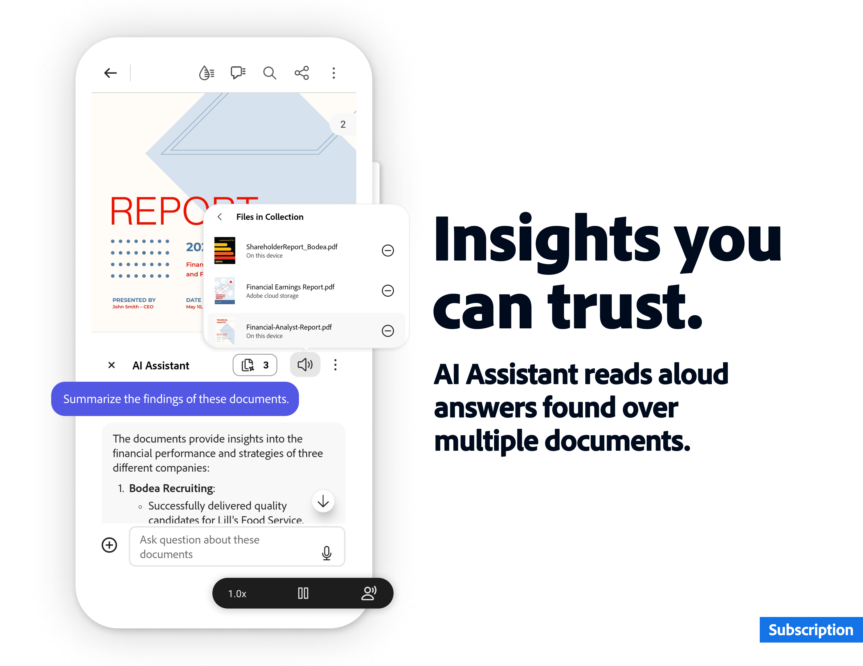 • Work across multiple files in one place with PDF Spaces. Collaborate, store, and use AI Assistant across files