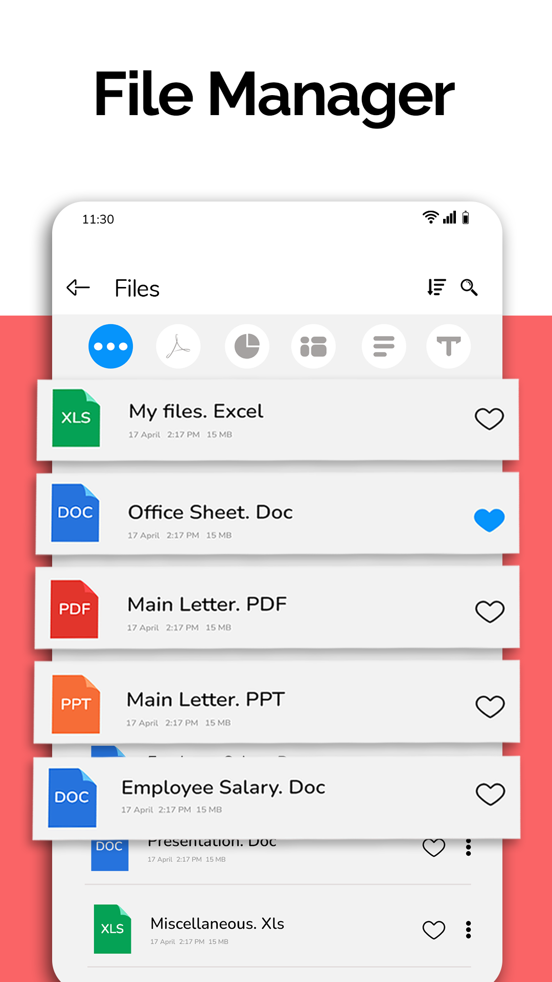 Получите доступ ко всем файлам, отсортируйте их по соответствующим форматам и разместите на одном экране. Удаляйте, переименовывайте и делитесь всеми документами с помощью редактора документов. Получите полную информацию о файле, такую как путь к файлу, размер, дату последнего изменения и т. д. All Document Reader: PDF Viewer очень прост и удобен в использовании.