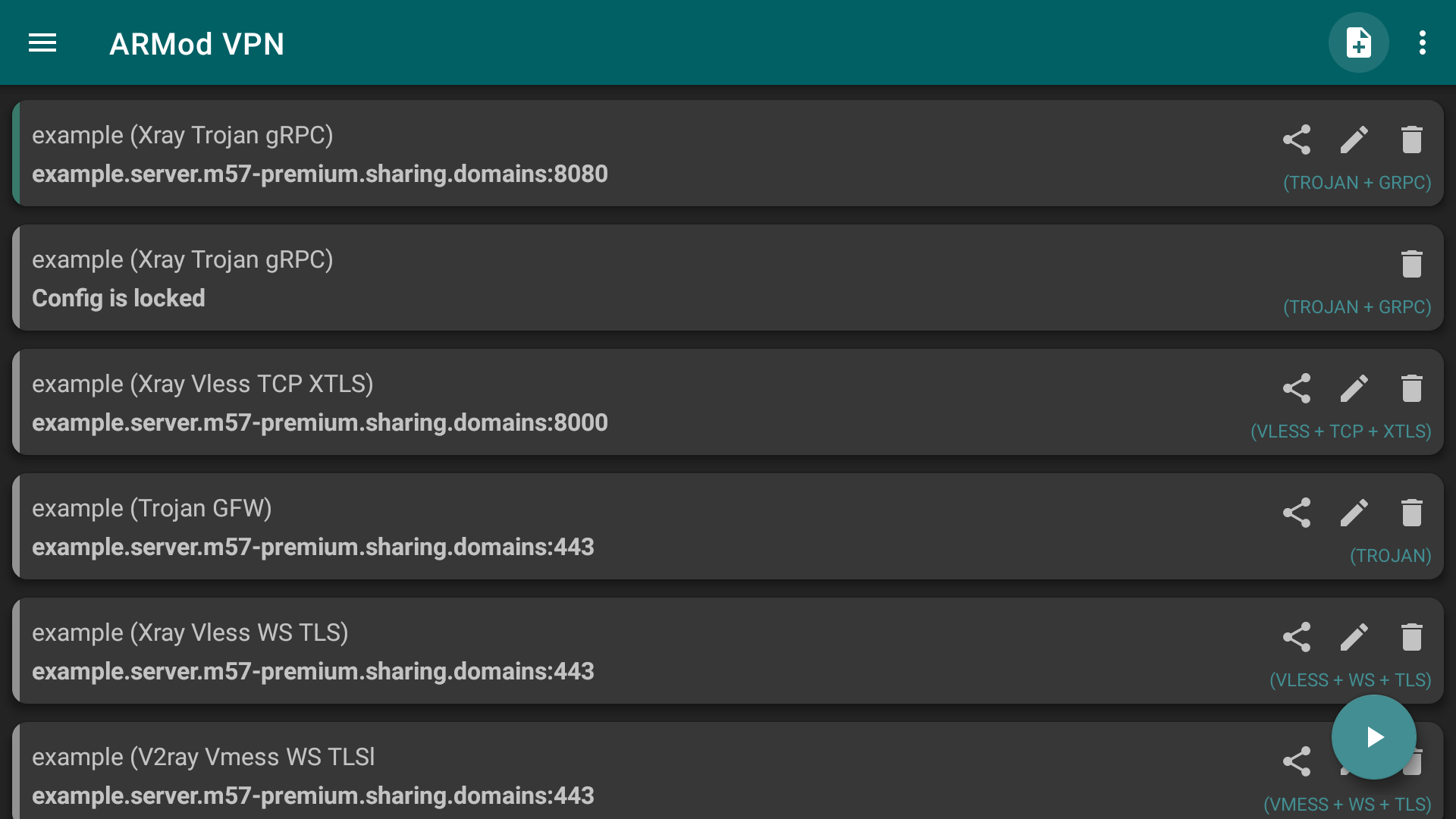 - Поделиться/экспортировать конфигурацию как URI или QR-код