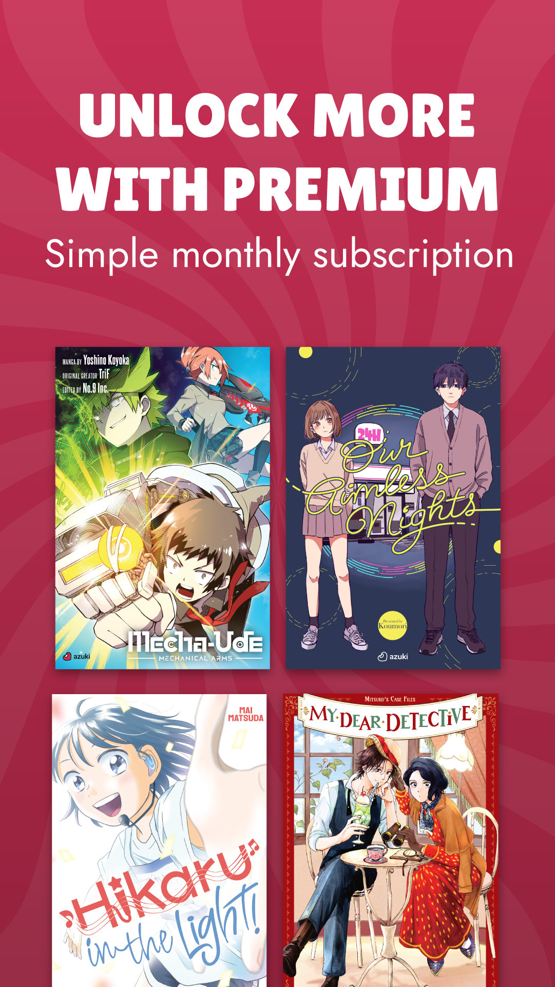 Более 350 серий, охватывающих все жанры: от сёнэн-баттлов до романтических сёдзё, новые главы добавляются каждый день. Откройте для себя новые сериалы только на Азуки, такие как «Нацуме и Нацуме» и «Ты такой неряшливый, Хотта-сенсей». Изучите огромный каталог мега-хитов и классических произведений, таких как «Атака Титанов», «Огненная сила», «Когда я перевоплотился в слизь» и других. Плюс тщательно подобранная инди-манга и скрытые сокровища от начинающих авторов.