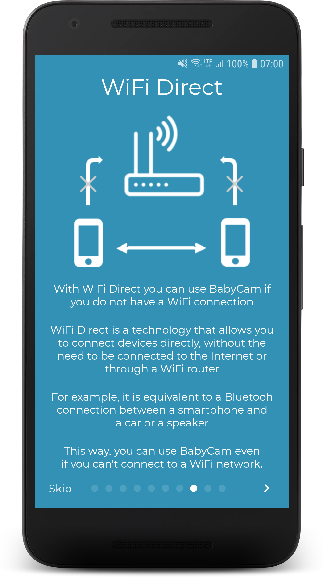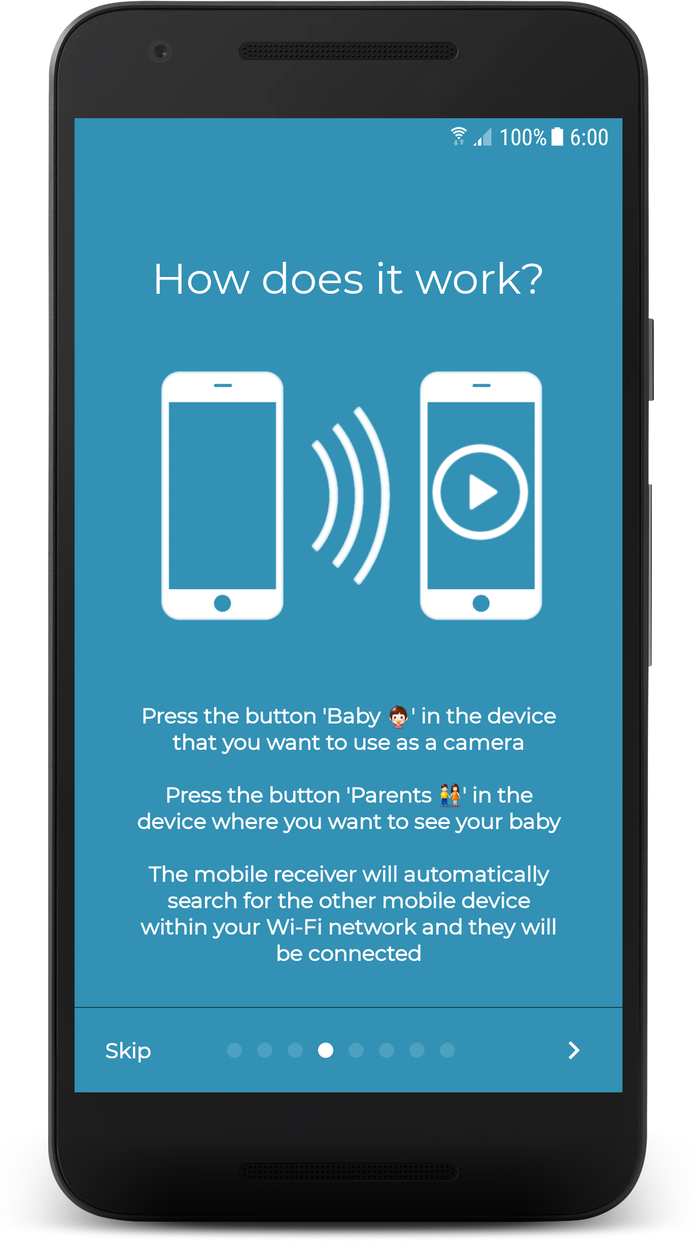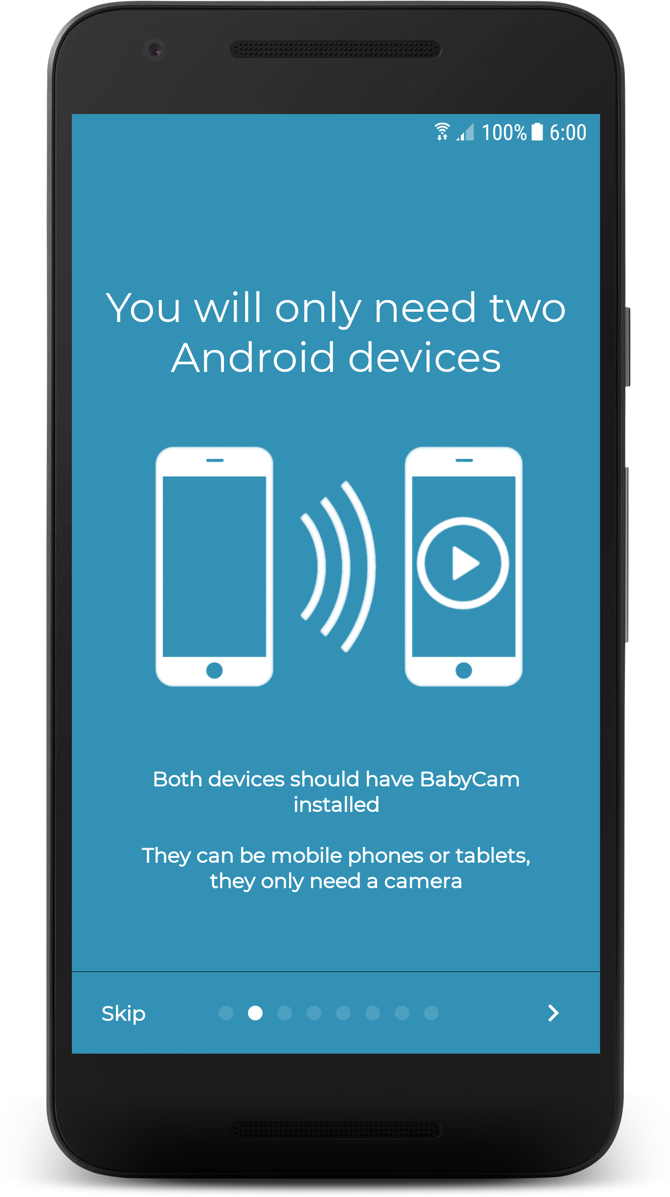 С BabyCam не нужно будет регистрироваться, вводить коды для соответствия устройствам или тому подобное, как это происходит в других подобных приложениях. Просто нажав кнопку на каждом устройстве, они подключатся.