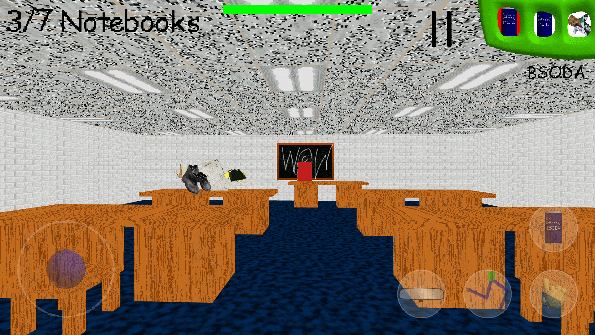 • Бесконечный режим — это испытание, в котором нужно посмотреть, сколько тетрадей вы сможете собрать, прежде чем вас поймает Балди. Со временем Балди будет ускоряться, но каждый раз, когда вы успешно решаете проблемы в блокноте, он будет замедляться. Чем дольше вы сможете удерживать его скорость на низком уровне, тем больше блокнотов вы сможете собрать!