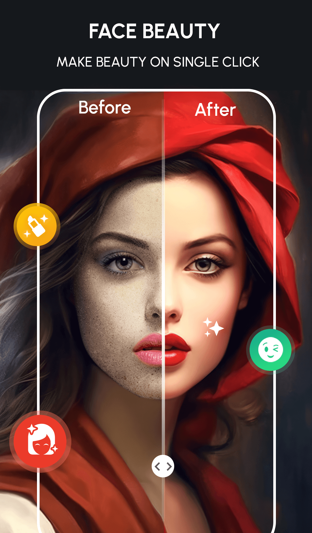 Мгновенно получайте идеальные и естественные фотографии с помощью одного из лучших приложений для красоты. Вы делаете свои фотографии и делаете их более красивыми и привлекательными с помощью этого фоторедактора для макияжа. Макияж лица путем удаления прыщей, устранения дефектов, придания красоты, гладкости кожи и многого другого в этом редакторе фотомакияжа. Украсьте фотографии, удалив темные пятна и прыщи в этом редакторе фотографий для макияжа, просто используя панель поиска, это сделает ваши фотографии более четкими и естественными.