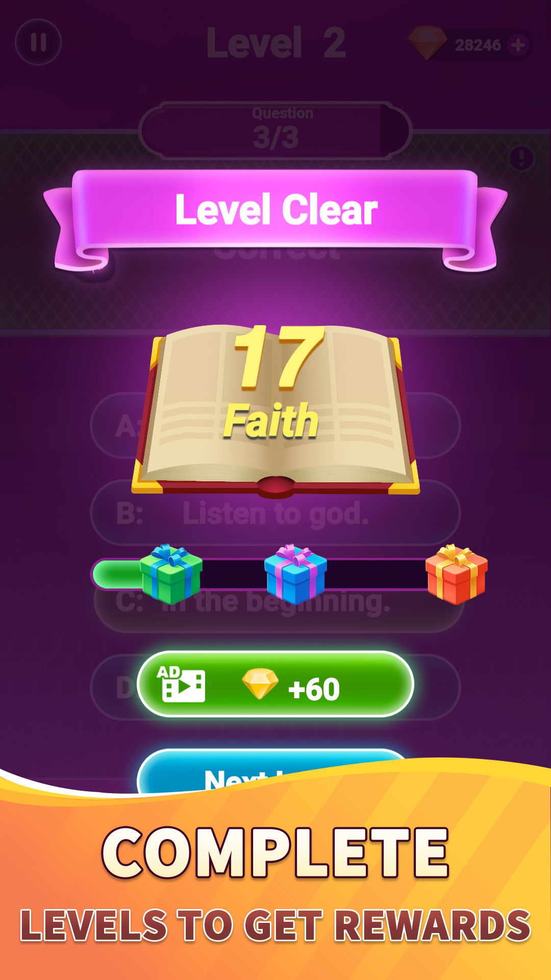 Experience Bible Trivia Game, Enjoy Bible quiz games with levels!