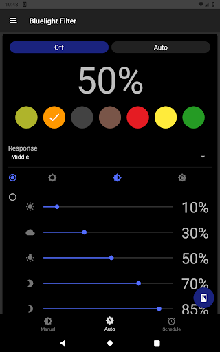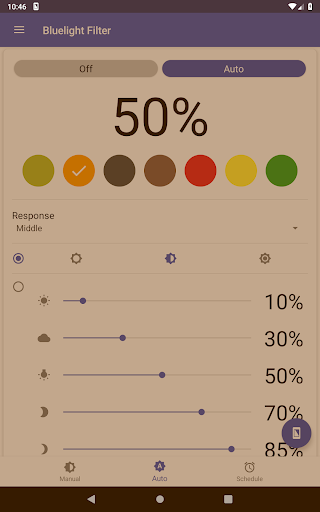 Это приложение регулирует цвет экрана для уменьшения синего света, которое вызывает утомление Ваших глаз.