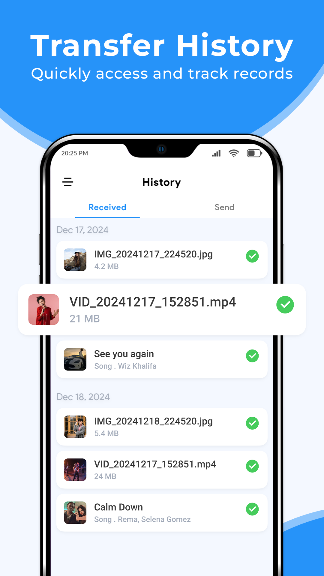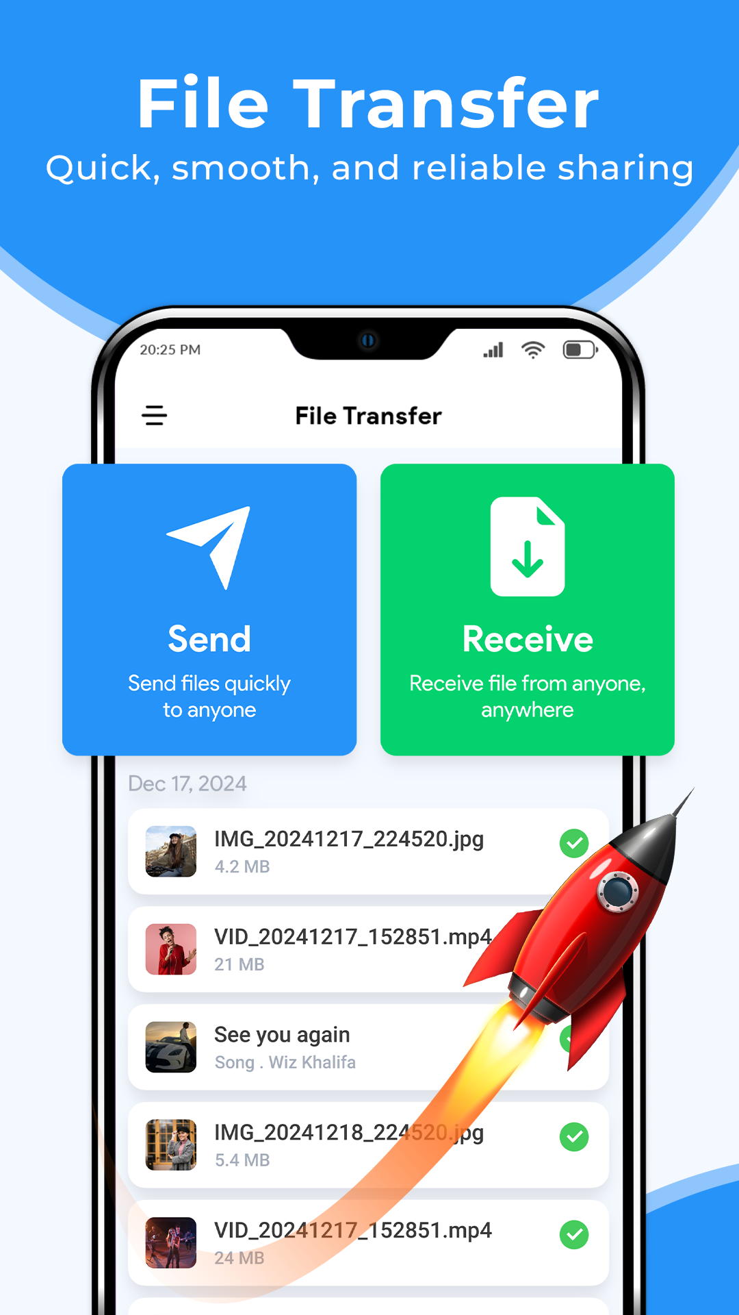 Интеллектуальный обмен файлами через Wi-Fi, обеспечивающий скорость и безопасность во время процесса передачи.