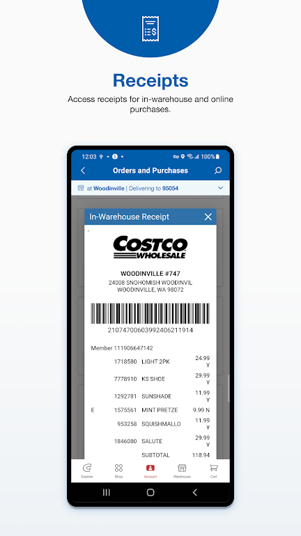 • Новый! Ваша членская карта теперь доступна в приложении Costco. Войдите на склад и начните оформление заказа в реестре, используя цифровую карту участника на своем телефоне.