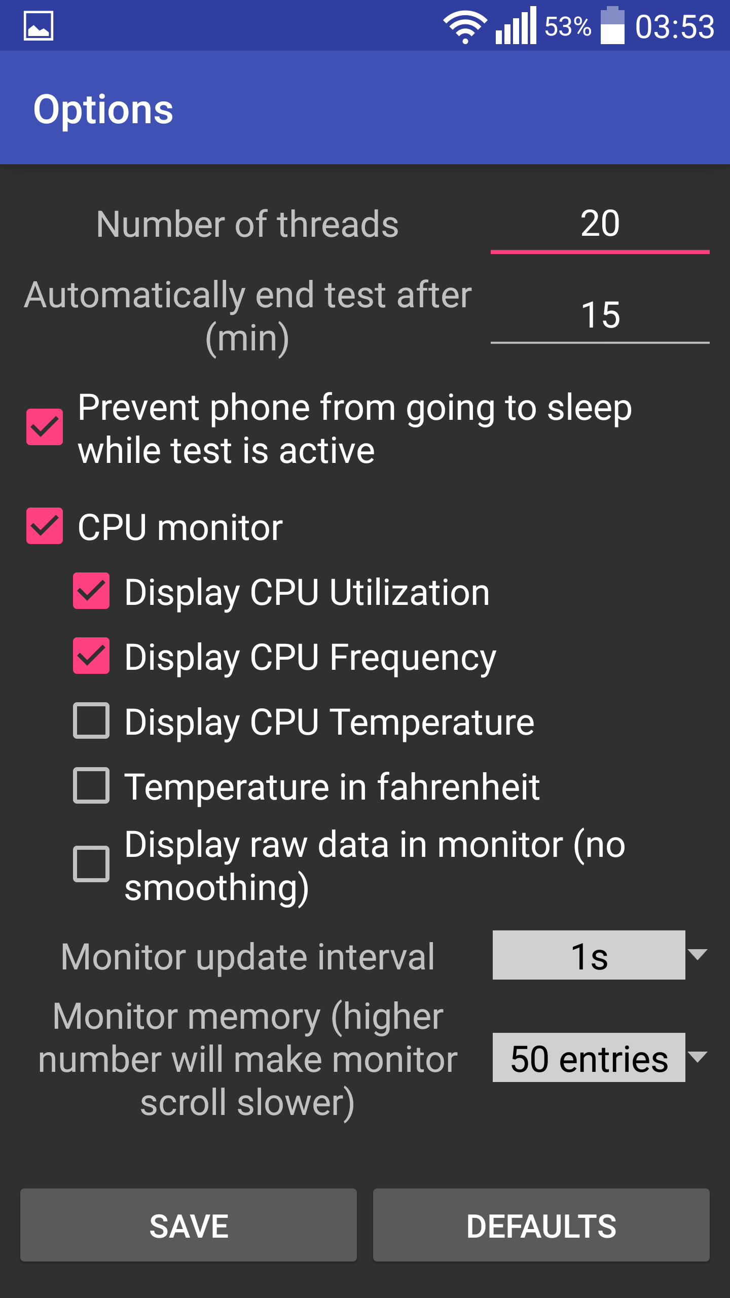 Это приложение отображает производительность на графике и показатели максимальной, минимальной и средней производительности. После тестирования приложения будет анализировать данные, чтобы найти, если и сколько дросселирования процессора произошло.