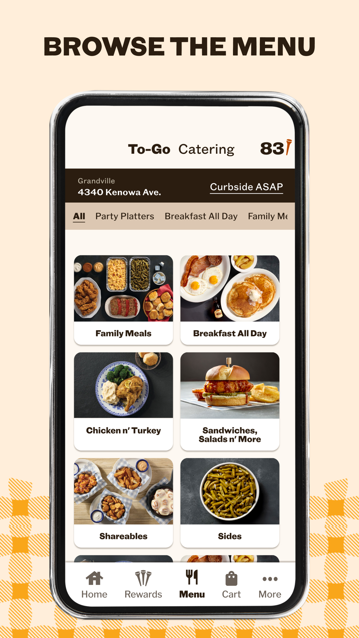Сделать заказ на любимое блюдо Cracker Barrel стало проще, чем когда-либо. Ознакомьтесь с меню и закажите его в приложении для удобного самовывоза, доставки или доставки.