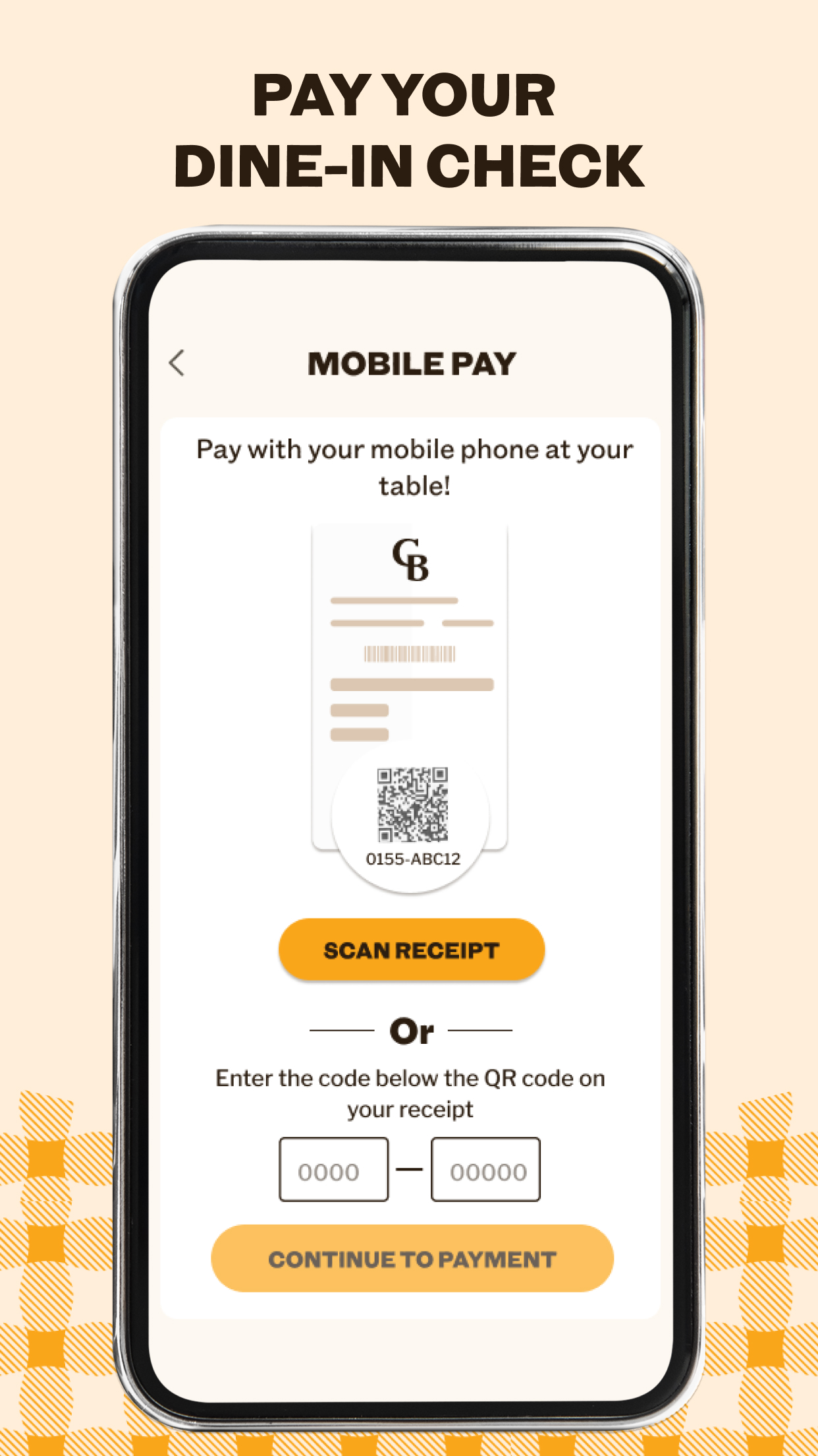 Приложение Cracker Barrel поможет вам во всём — и даже больше! Вы можете записаться в лист ожидания, оплатить еду в ресторане и заказать еду на вынос — и всё это прямо с телефона. Кроме того, оно необходимо для управления вашим счётом Rewards.