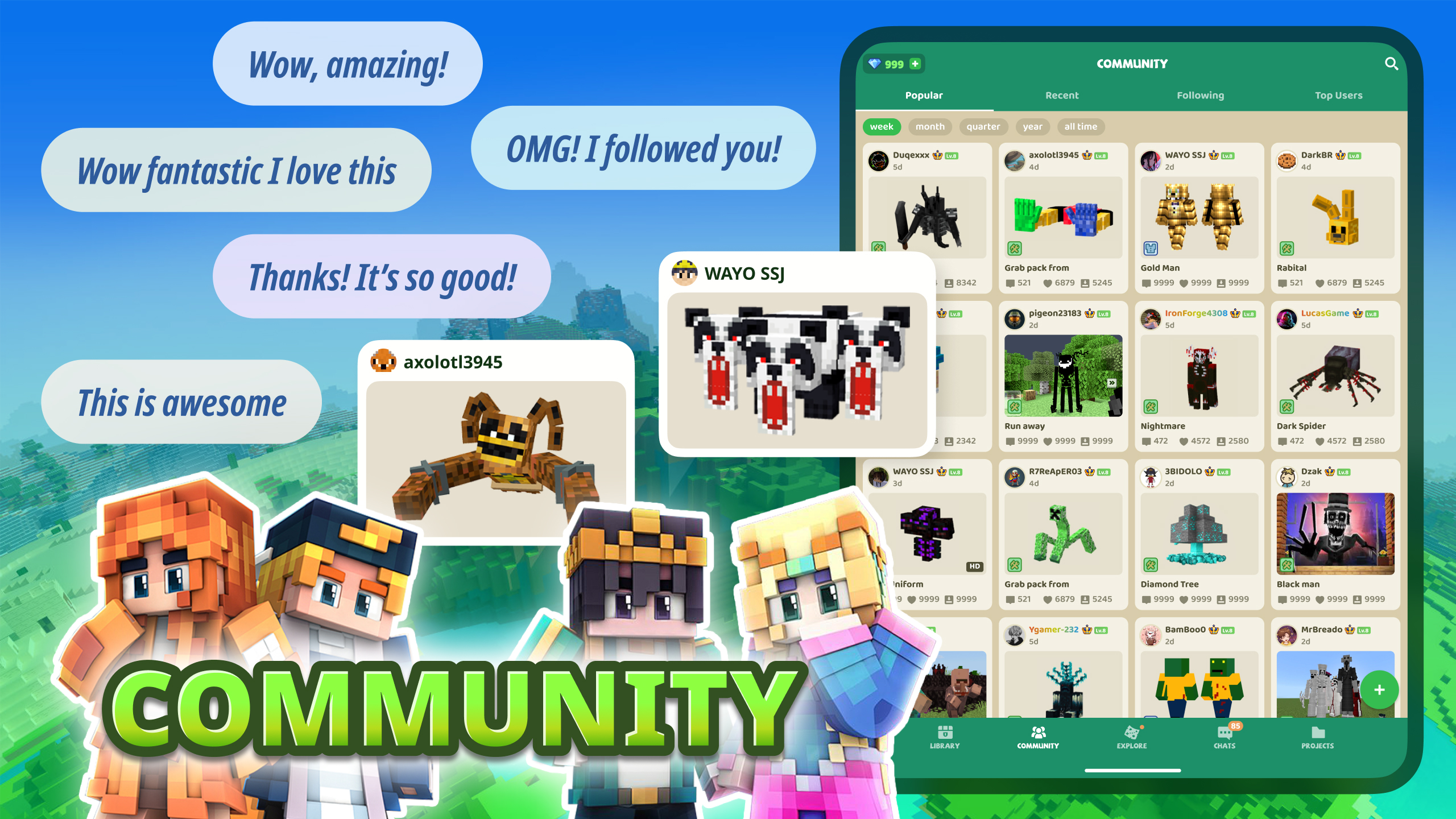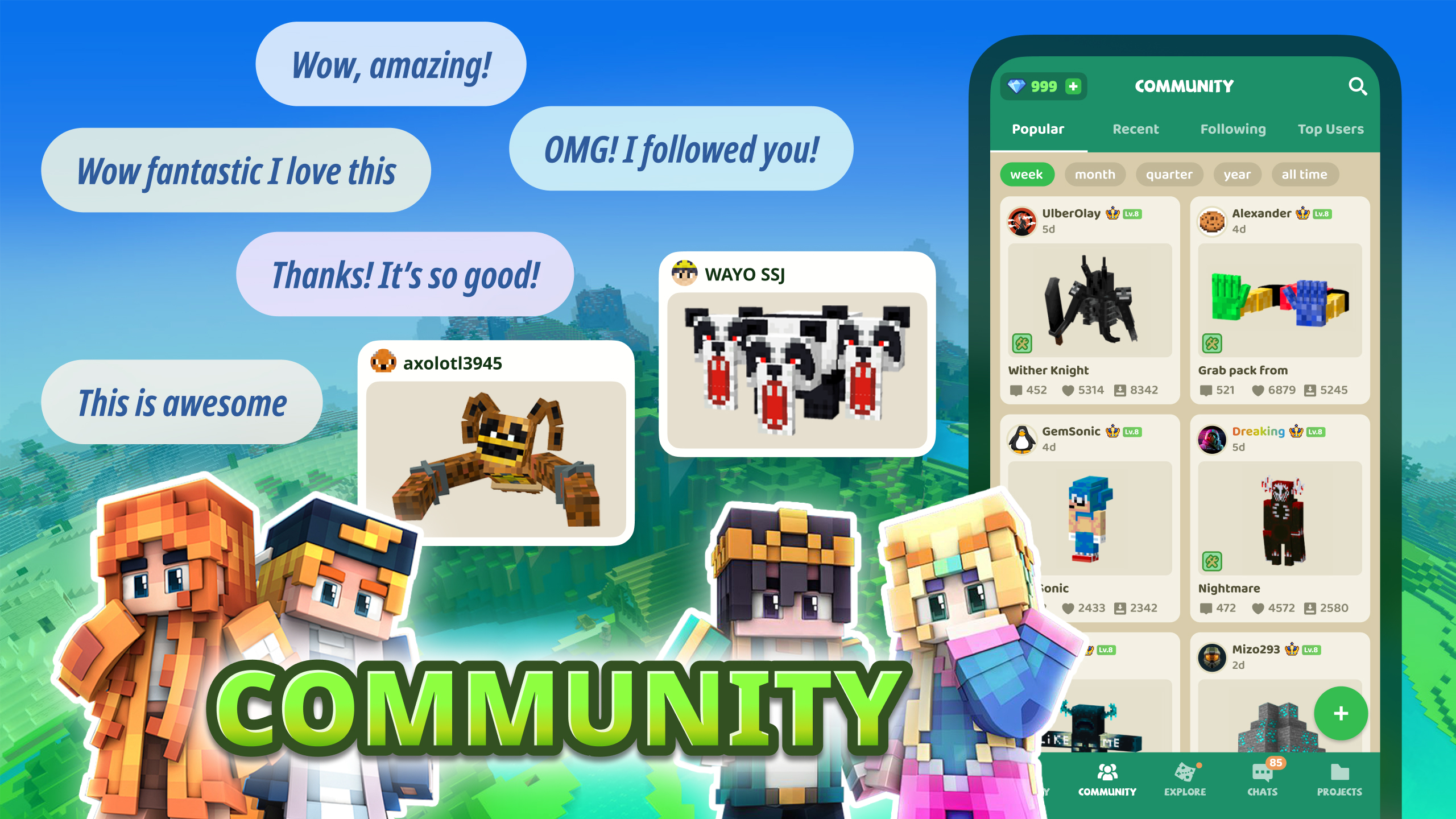 Загрузите самые популярные дополнения, скины, карты и текстуры MCPE или создайте их с помощью наших расширенных инструментов.
