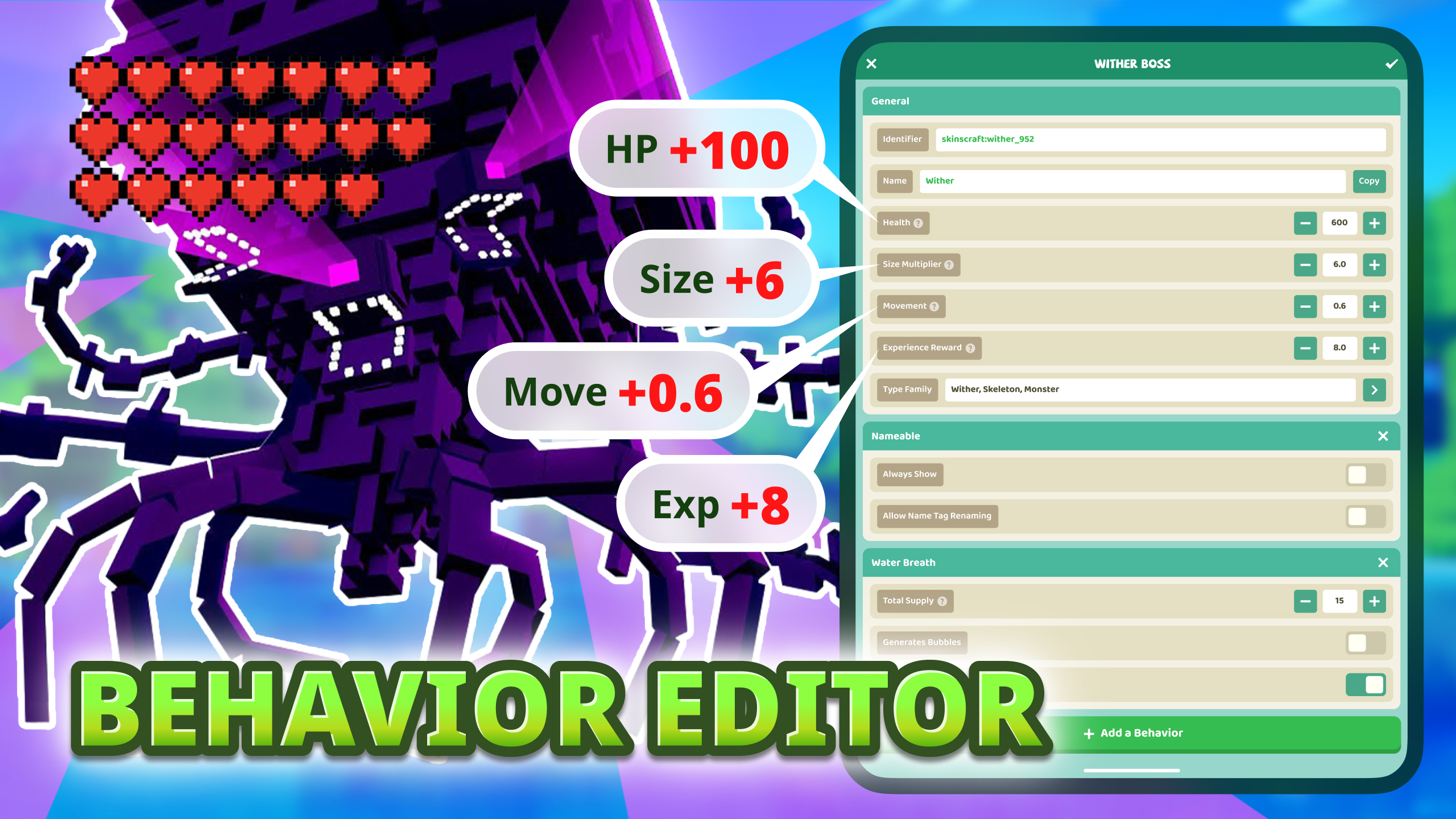 * Создавайте или изменяйте мобов, предметы, блоки, оружие, броню, растения и т. д.