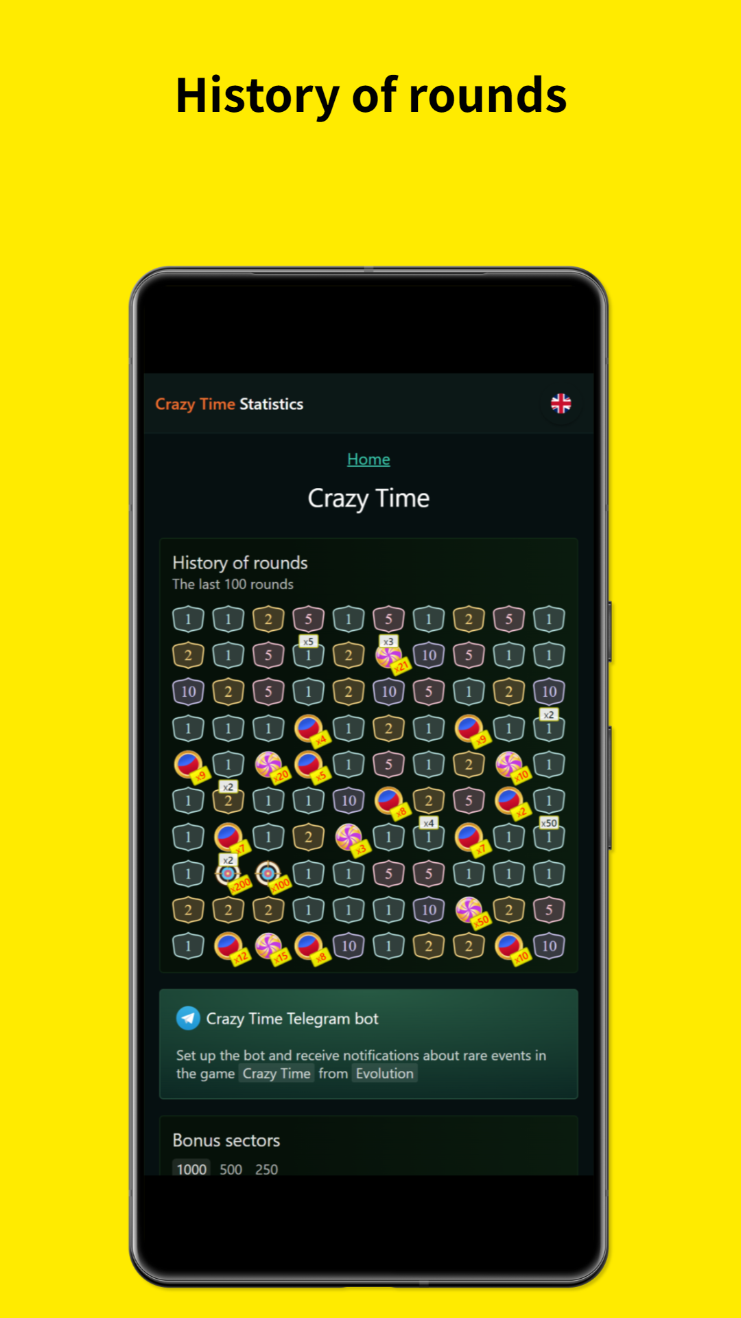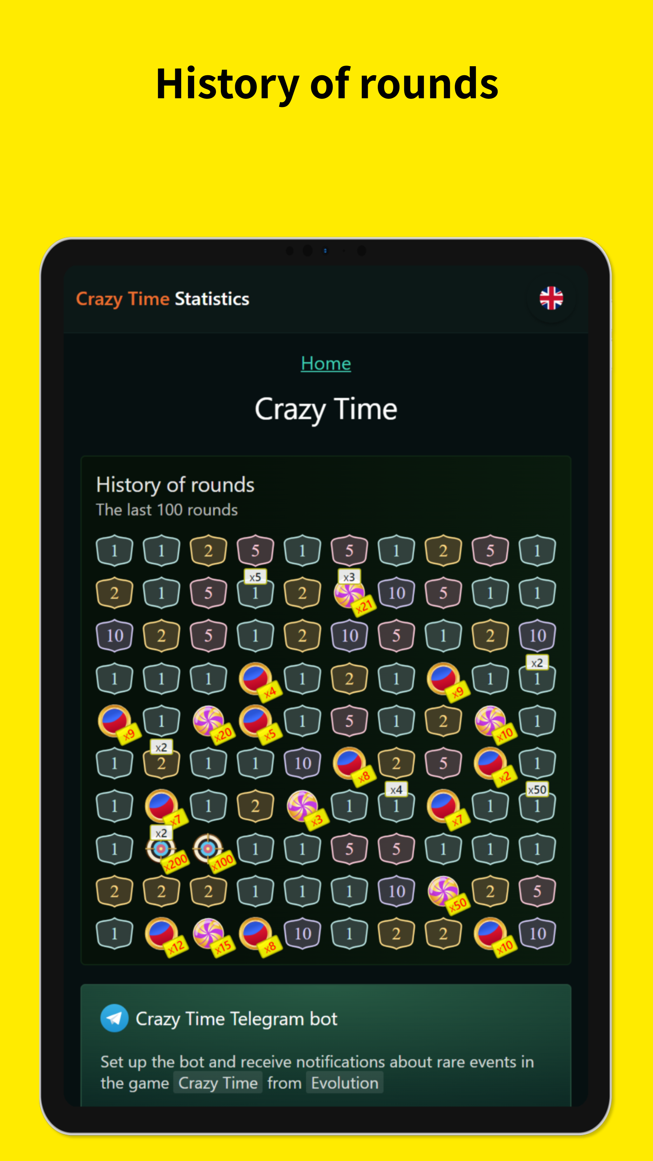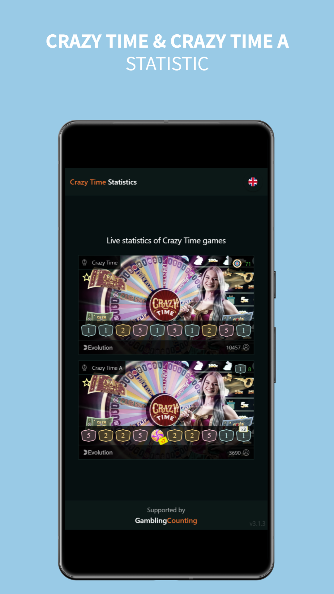 Приложение предоставляет пользователям удобный способ отслеживать и анализировать результаты прошедших игр Crazy Time и Crazy Time A от Evolution Gaming. Следите за статистикой, анализируйте ключевые моменты и улучшайте свои стратегии, основываясь на подробных данных о прошедших раундах. Независимо от того, являетесь ли вы новичком или опытным игроком, наше приложение предоставляет вам ценный инструмент для повышения уровня ваших игровых навыков в увлекательных играх от Evolution Gaming.