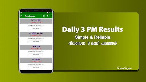 Приложение DhanaYogam переносит самые последние результаты лотереи на ваш смартфон. Вы можете проверить результат розыгрыша простым касанием. Мы стараемся подводить результаты как можно скорее после розыгрыша каждого дня. Каждый день в 15:00 мы публикуем результаты лотереи в реальном времени. Вы также можете выполнить поиск по предыдущим результатам.