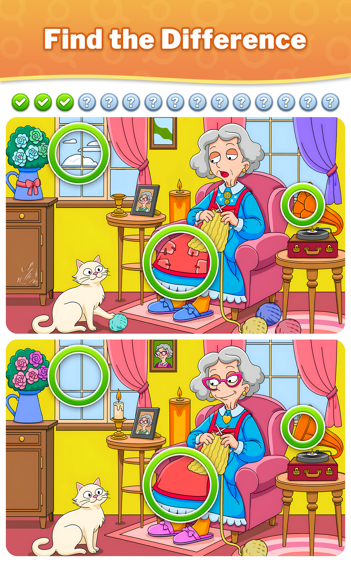 Эта игра не только веселая, но и фантастический способ улучшить вашу память, концентрацию и когнитивные навыки в радости обнаружения различий.