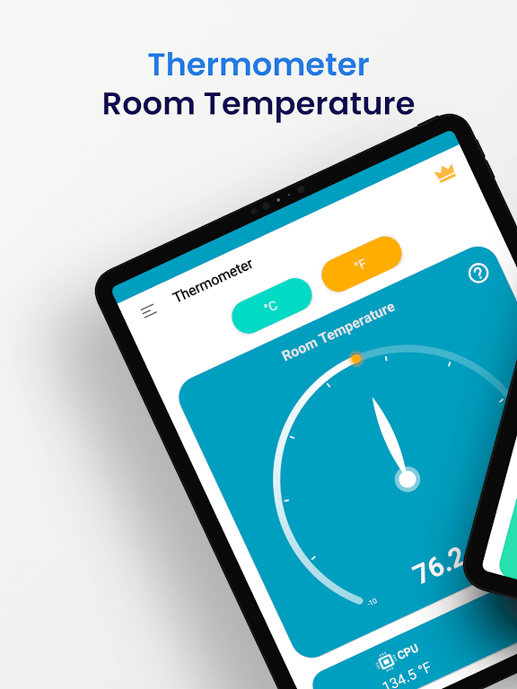Приложение можно использовать как цифровой термометр для разных целей: в спальне, офисе, детской, кухне или комнате с кондиционером. Также оно позволяет отслеживать температуру процессора и батареи устройства, действуя как универсальный температурный сканер.