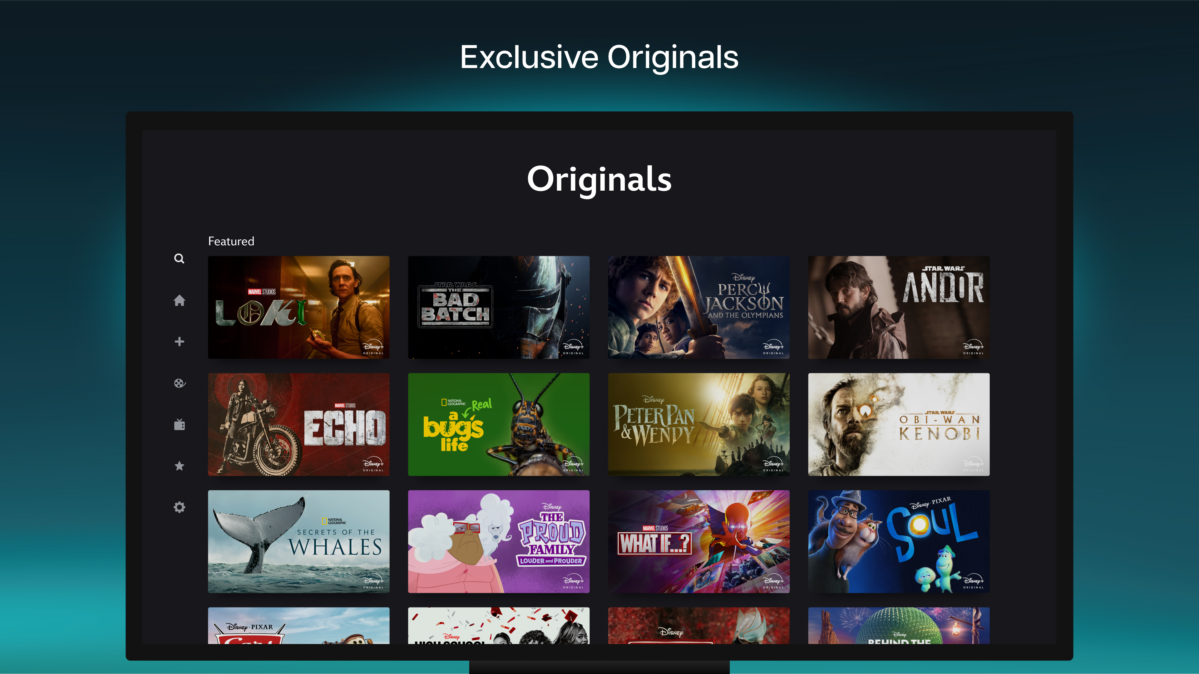 • Эксклюзивные новые оригиналы от Disney, Pixar, Marvel, Star Wars и National Geographic.