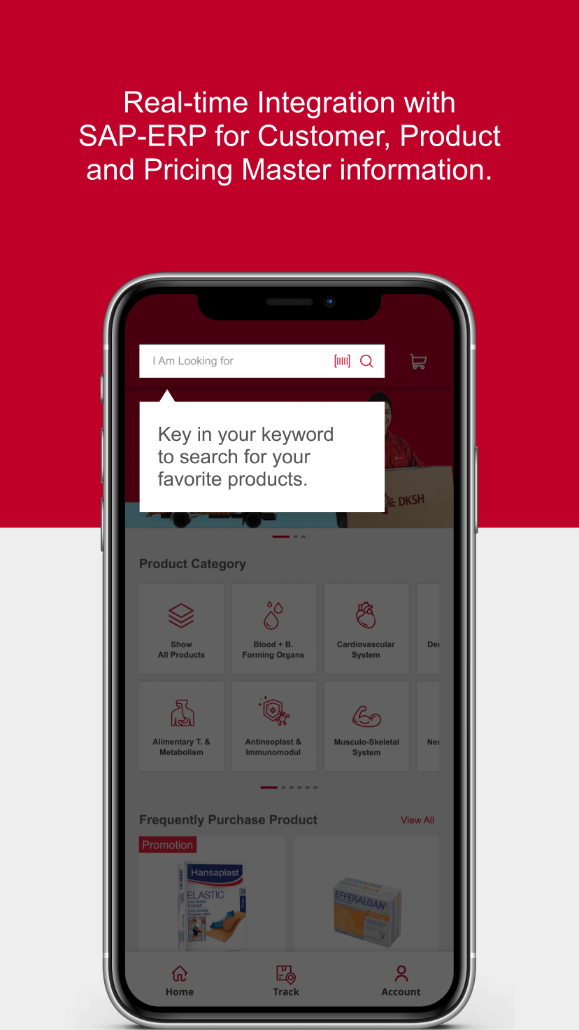 DKSH Connect Customer — это портал самообслуживания для клиентов типа «бизнес для бизнеса» (B2B), позволяющий выполнять деловые операции в Интернете, такие как просмотр каталогов продукции, размещение и отслеживание заказов. Мобильное приложение продвигает ключевые базовые функции платформы, предоставляя Клиентам возможность получить доступ к платформе Connect Customer на ходу через Мобильное приложение со своих мобильных устройств. В мобильном приложении появилась новая функция — сканер штрих-кода, с помощью которого покупатели могут сканировать штрих-код продуктов, искать товар и легко добавлять его в корзину.