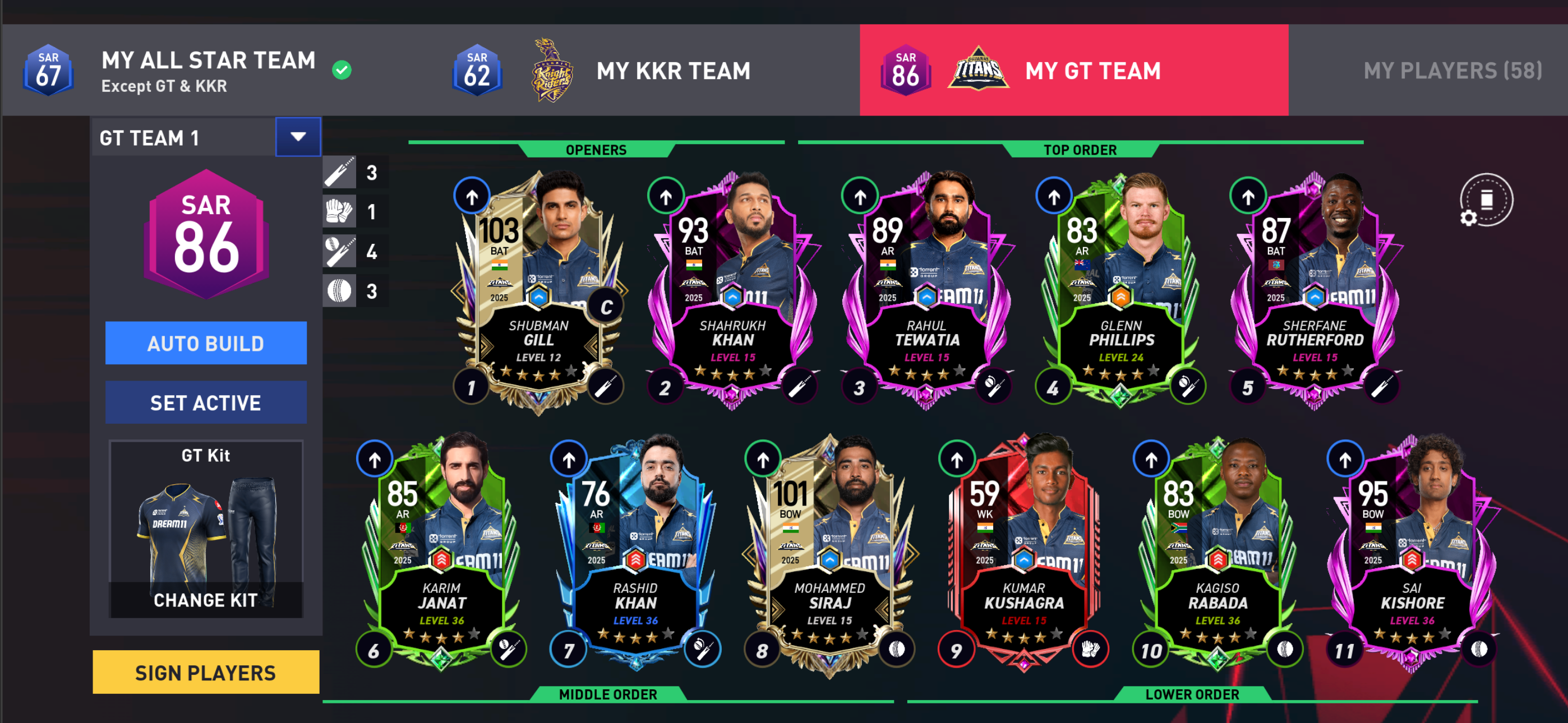 Build your Dream Team with 400+ official players in their realistic 3D avatars, featuring Indian cricket stars like Suryakumar Yadav, Shreyas Iyer, Suresh Raina, and more. The game features international legends like Chris Gayle, Brett Lee, Shoaib Akhtar, and more. Now, with officially licensed KOLKATA KNIGHT RIDERS and GUJARAT TITANS teams, you can play with top T20 stars like Shubman Gill, Mohammad Siraj, Jos Butler, Andre Russell, Sunil Narine, Venkatesh Iyer, and more.