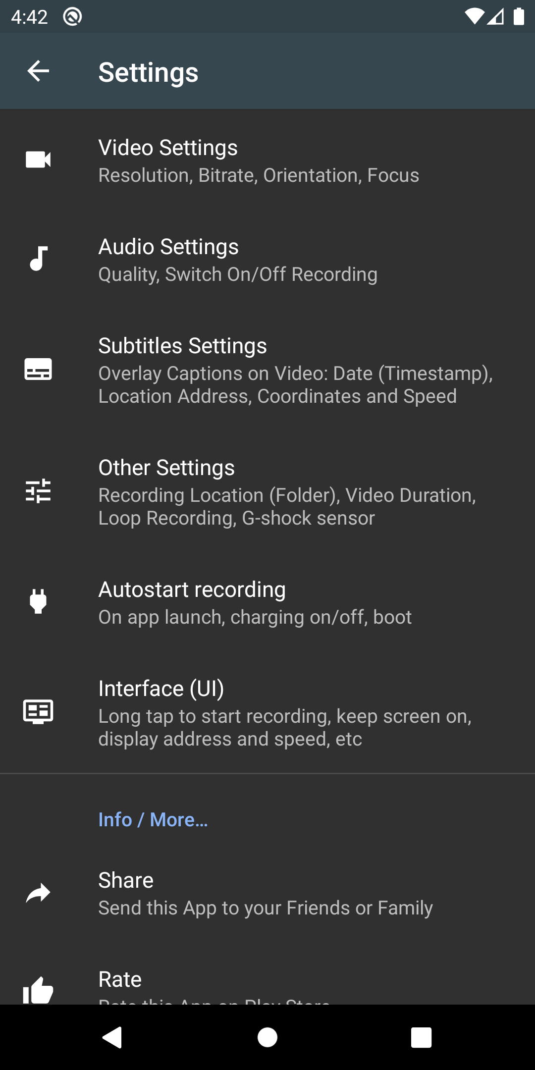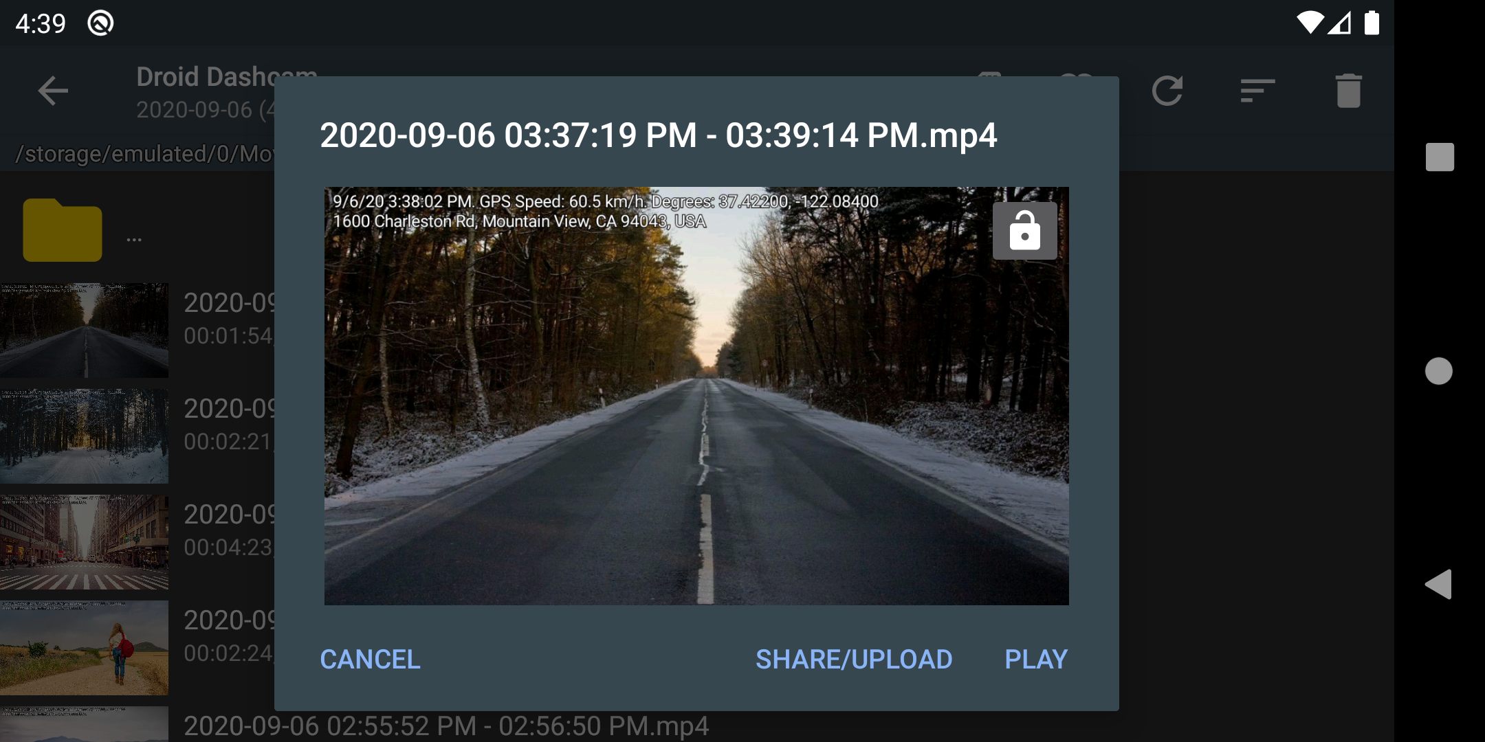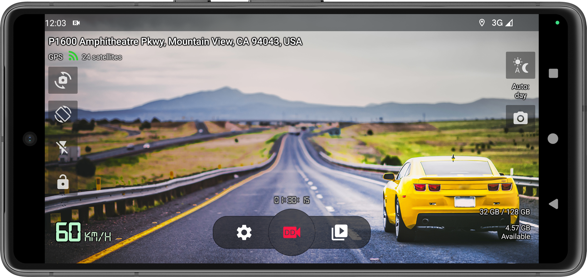 Droid Dashcam - полезное приложение для записи видео водителям автомобилей (авто видеорегистратор, черный ящик), которое может непрерывно записывать видео в циклическом режиме, добавлять субтитры с необходимой информацией к этим видео (читайте ниже), записывать в фоновом режиме, автозапуск записи и многое другое.