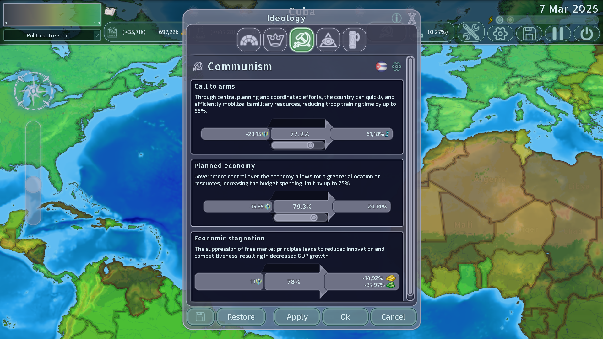 •Определите экономическую политику вашей страны и добейтесь высокого экономического роста, что может позволить вам опередить соперников в гонке за власть даже без применения военной силы.