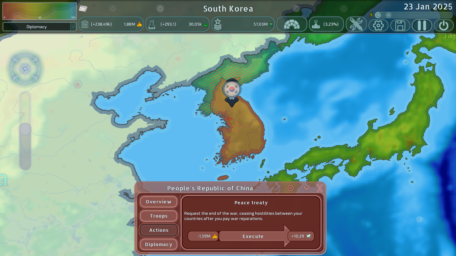 Геополитическая менеджмент-игра с постепенными аннексиями и подвижным геймплеем.