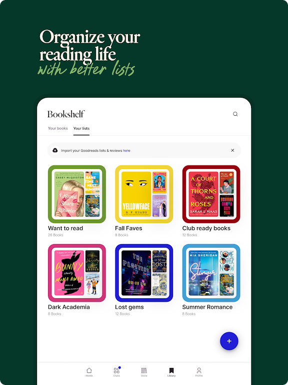 - Просматривайте все свои рецензии на книги в одном месте, импортировав списки из Goodreads.