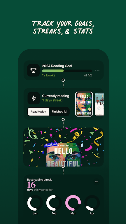 - Просматривайте индивидуальные диаграммы и графики ваших привычек чтения.