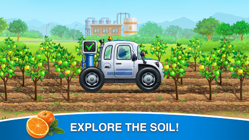 Дети собирают из частей, как пазлы, сельскохозяйственные грузовики и управляют ими на ферме для детей для выращивания сочного урожая апельсинов. Дети от 2 до 5 лет будут работать на симуляторе фермы и ухаживать за апельсиновыми деревьями! Дети кладут семена апельсина в почву, поливают их и наблюдают за их ростиом в режиме реального времени!