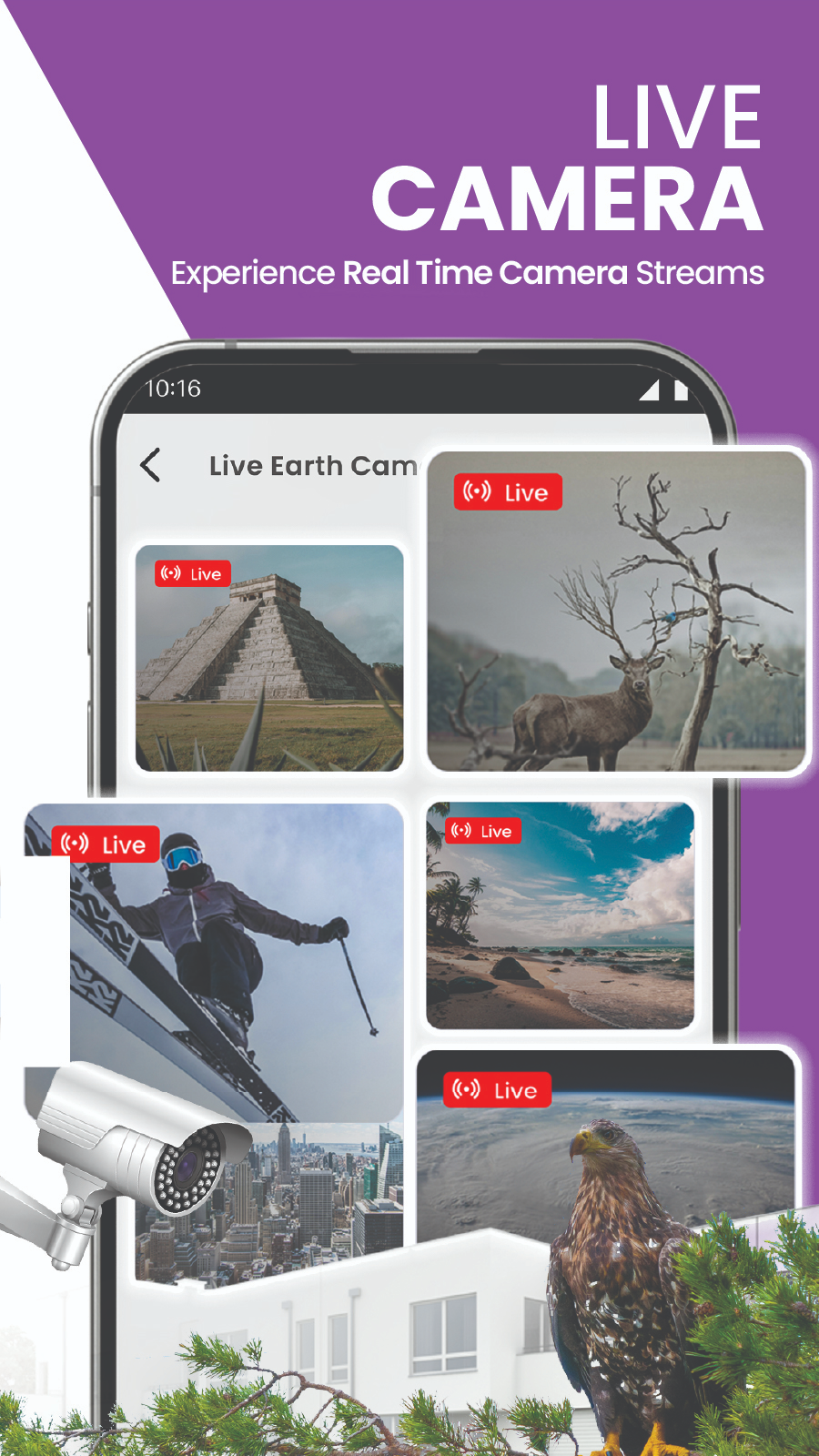 ● живая камера Earth коллекция предлагает прямые трансляции из разных мест по всему миру, таких как улицы, движение транспорта, прибрежные зоны и т. д.