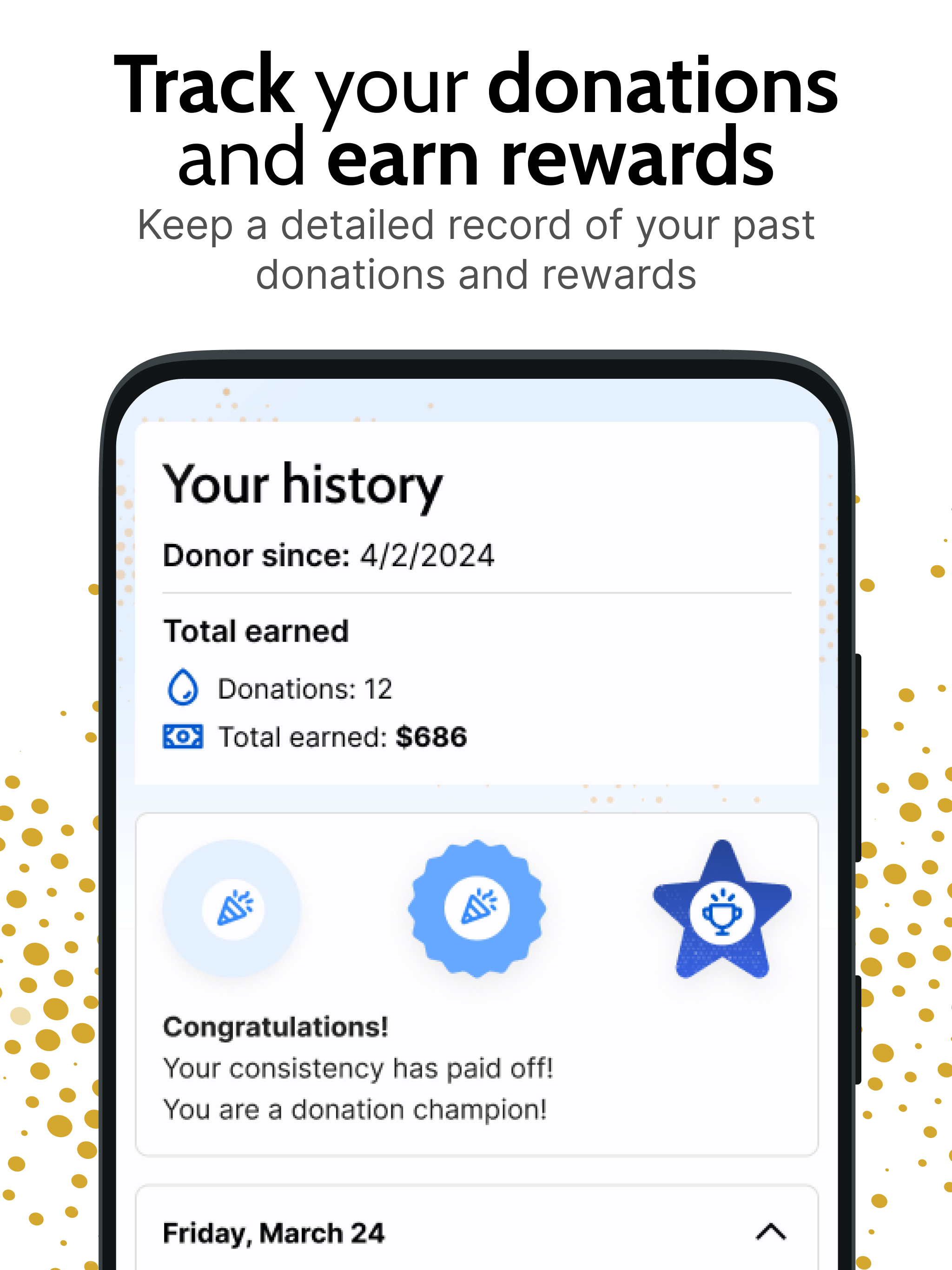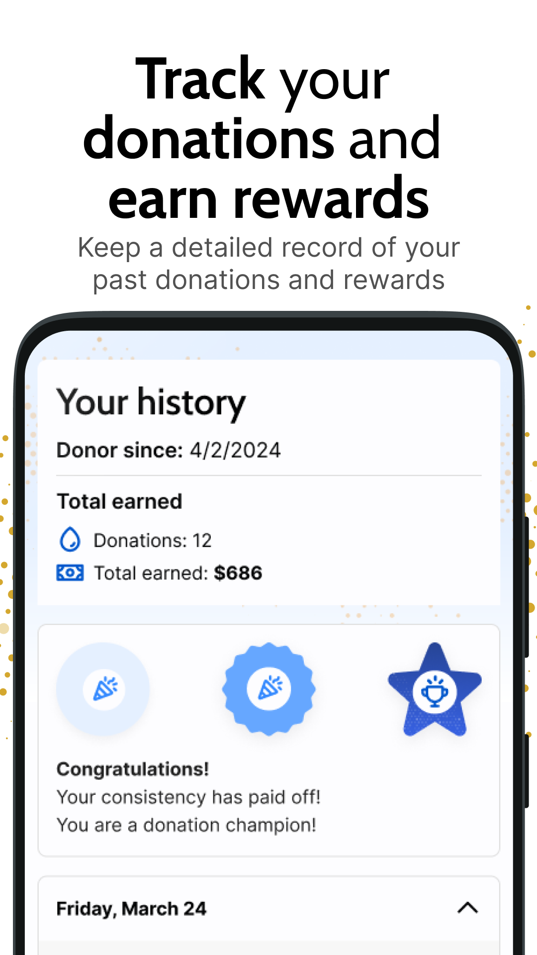 • 📊 Проверьте историю своих пожертвований и компенсаций. Подробная информация о вашем последнем пожертвовании доступна в Grifols DonorHub™ через 24 часа после вашего посещения.