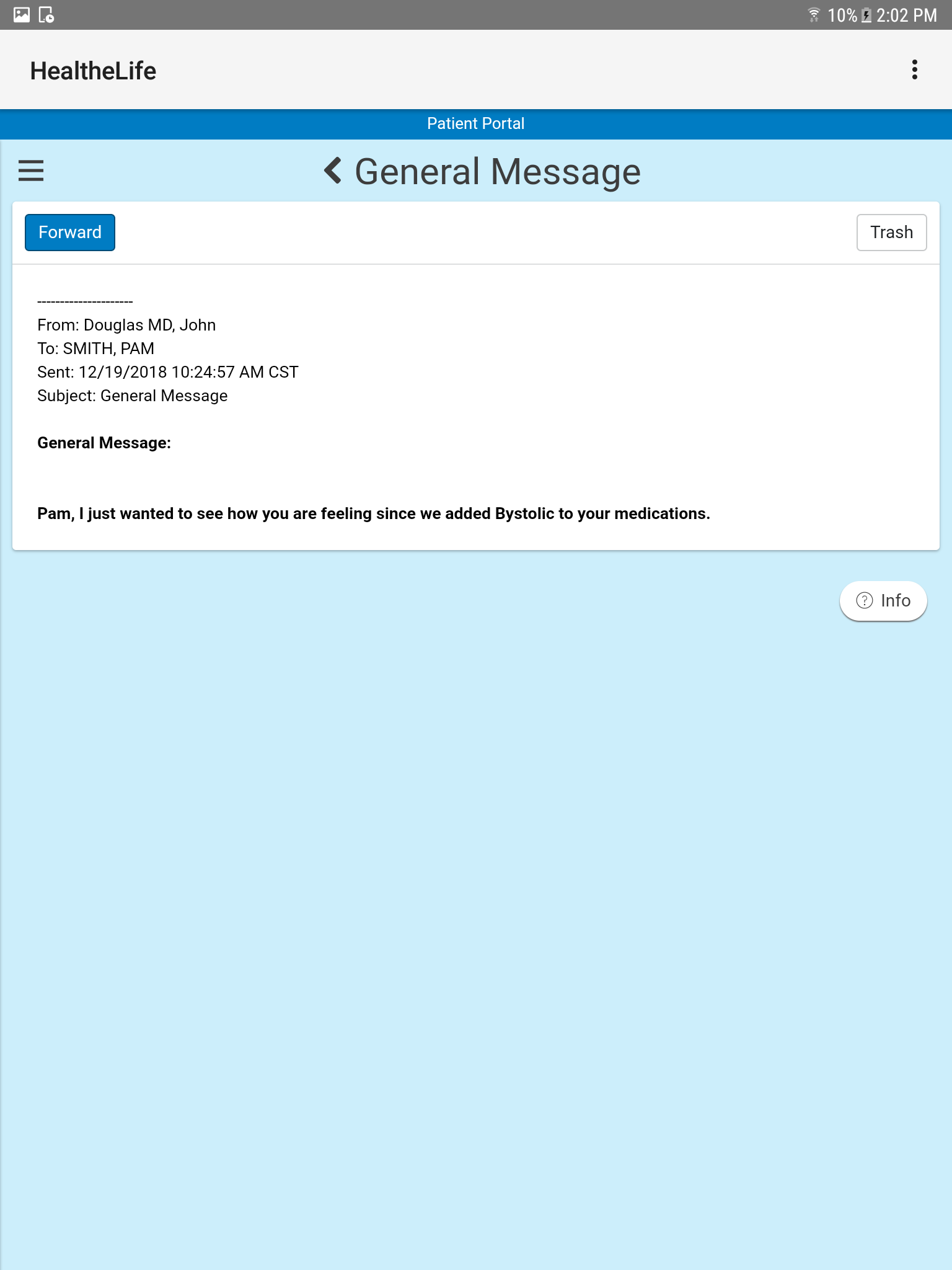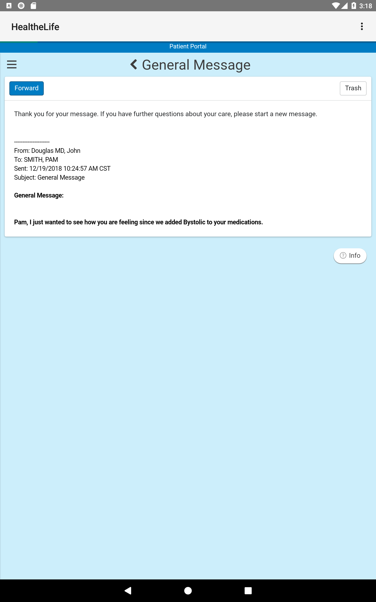 Если вам нужна помощь доступа к вашей существующей учетной записи, посетите веб-сайт своего лечащего организации здравоохранения для вариантов поддержки. Обратитесь к поставщику напрямую о вопросы о вашей истории болезни. Личные запросы здоровья или проблемы в курсе, как комментарии в магазине Play не могут быть решены.