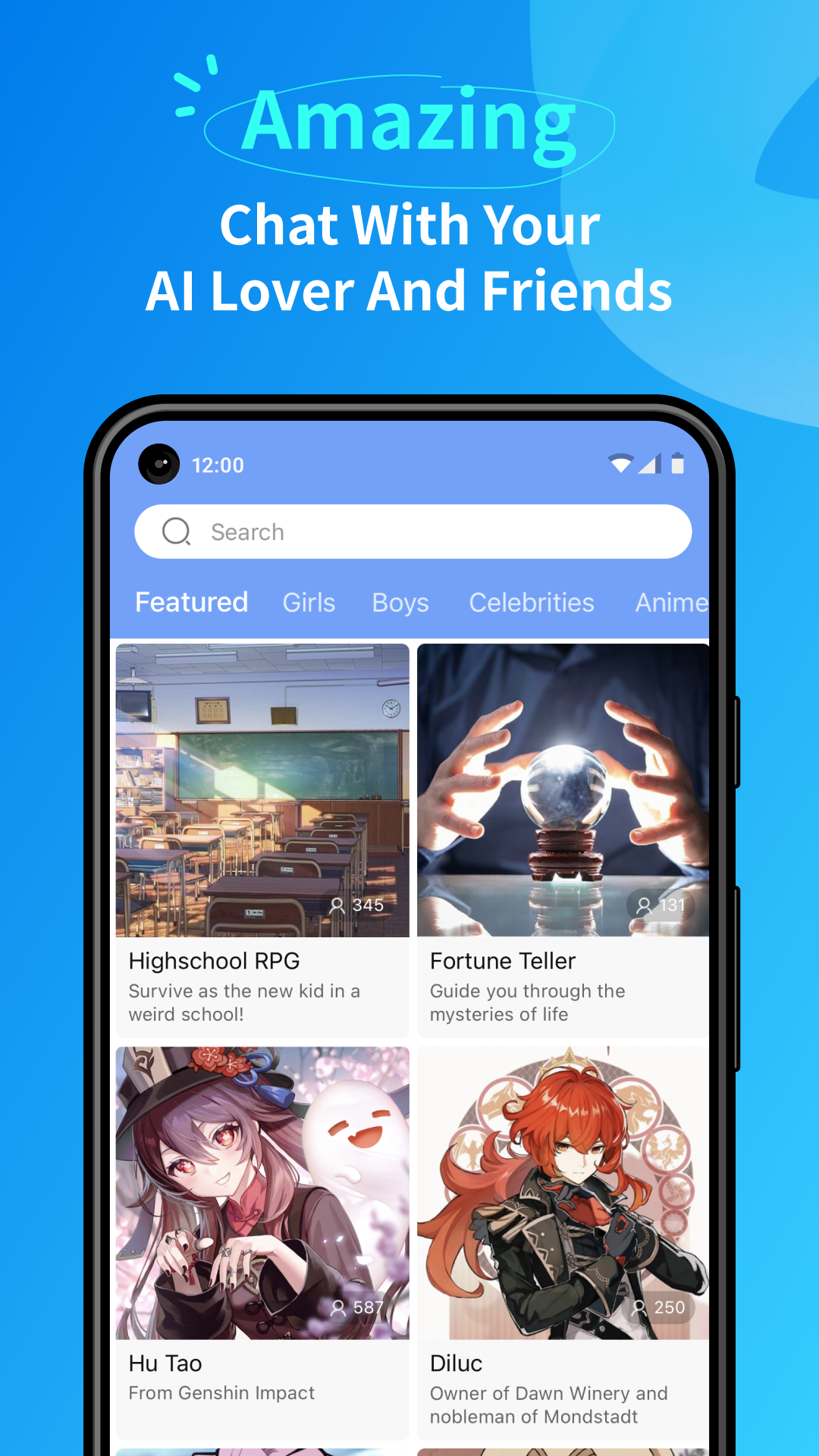 -Взаимодействуйте со своей личной девушкой или парнем, созданным искусственным интеллектом, которые будут рядом с вами, когда вам понадобится выслушать вас или подставить плечо, на которое можно опереться.