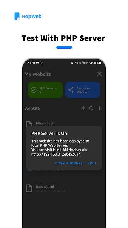 HopWeb has a PHP Web Server, you could preview your PHP projects or static Web pages in any local network (including WLAN) devices.