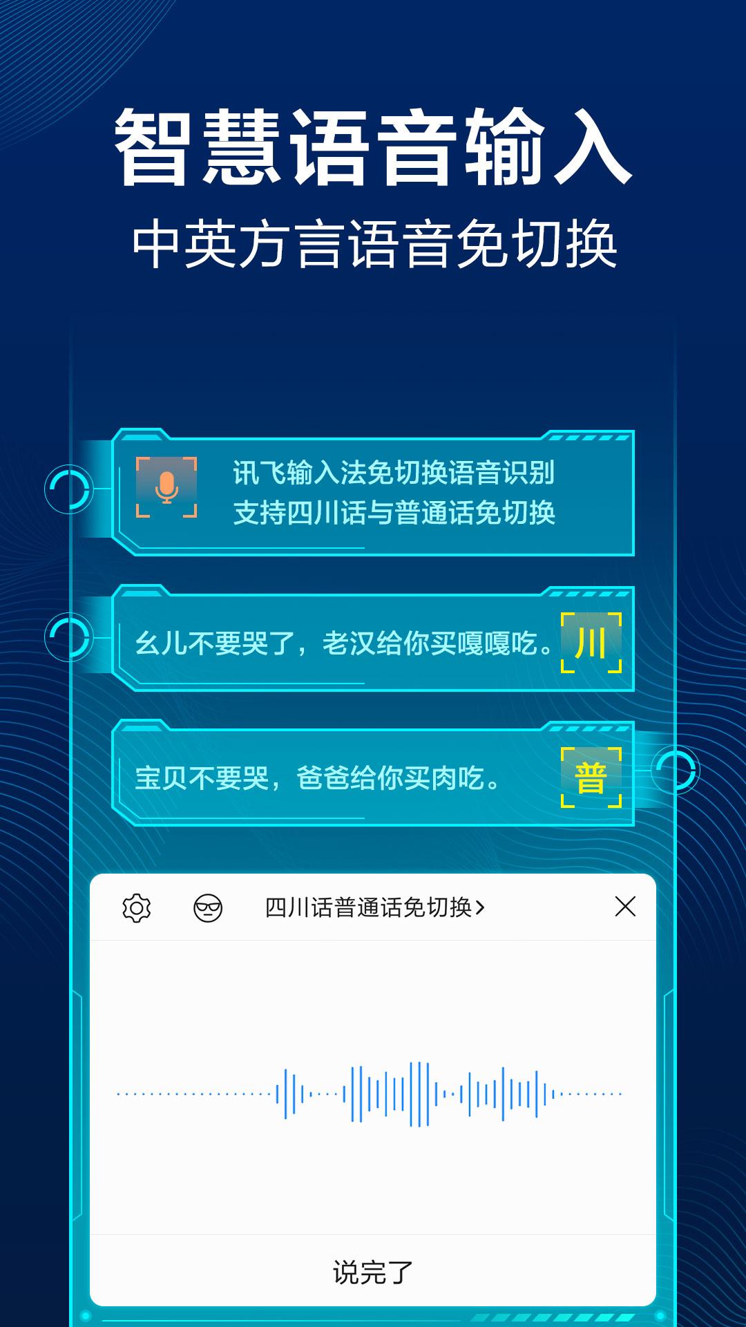 讯飞输入法,1分钟400字,语音输入带你飞!流畅输入,语音精准,手写快捷,还有海量皮肤、表情、颜文字,是你的必备手机输入法。