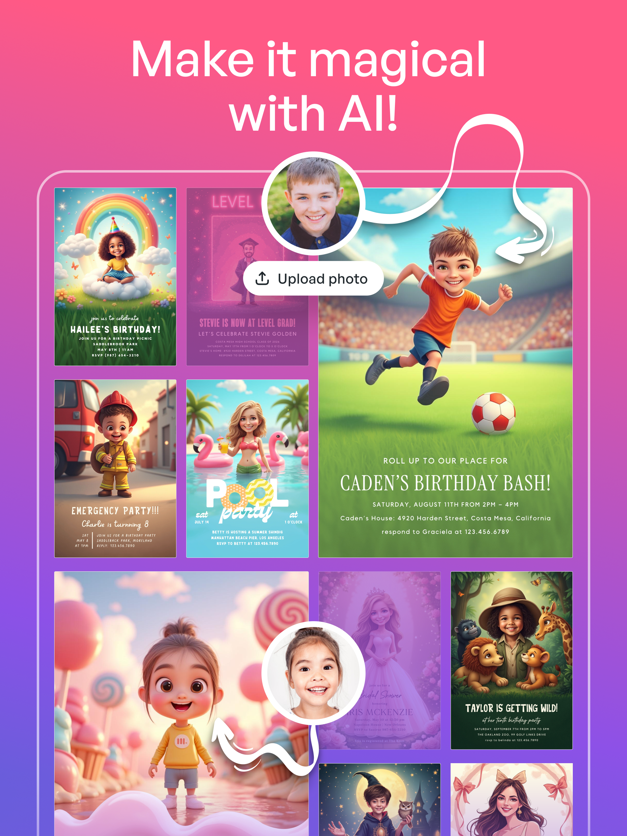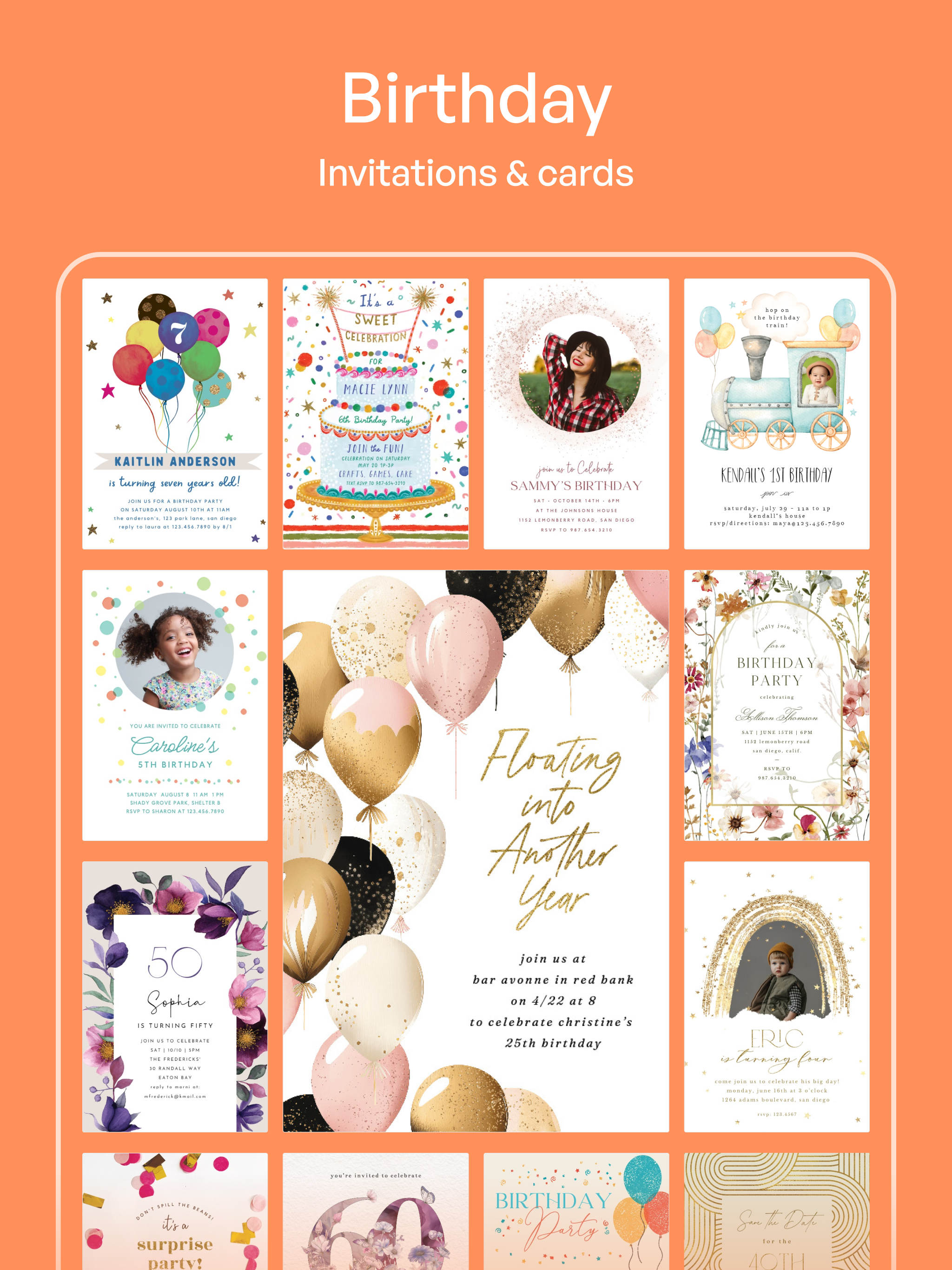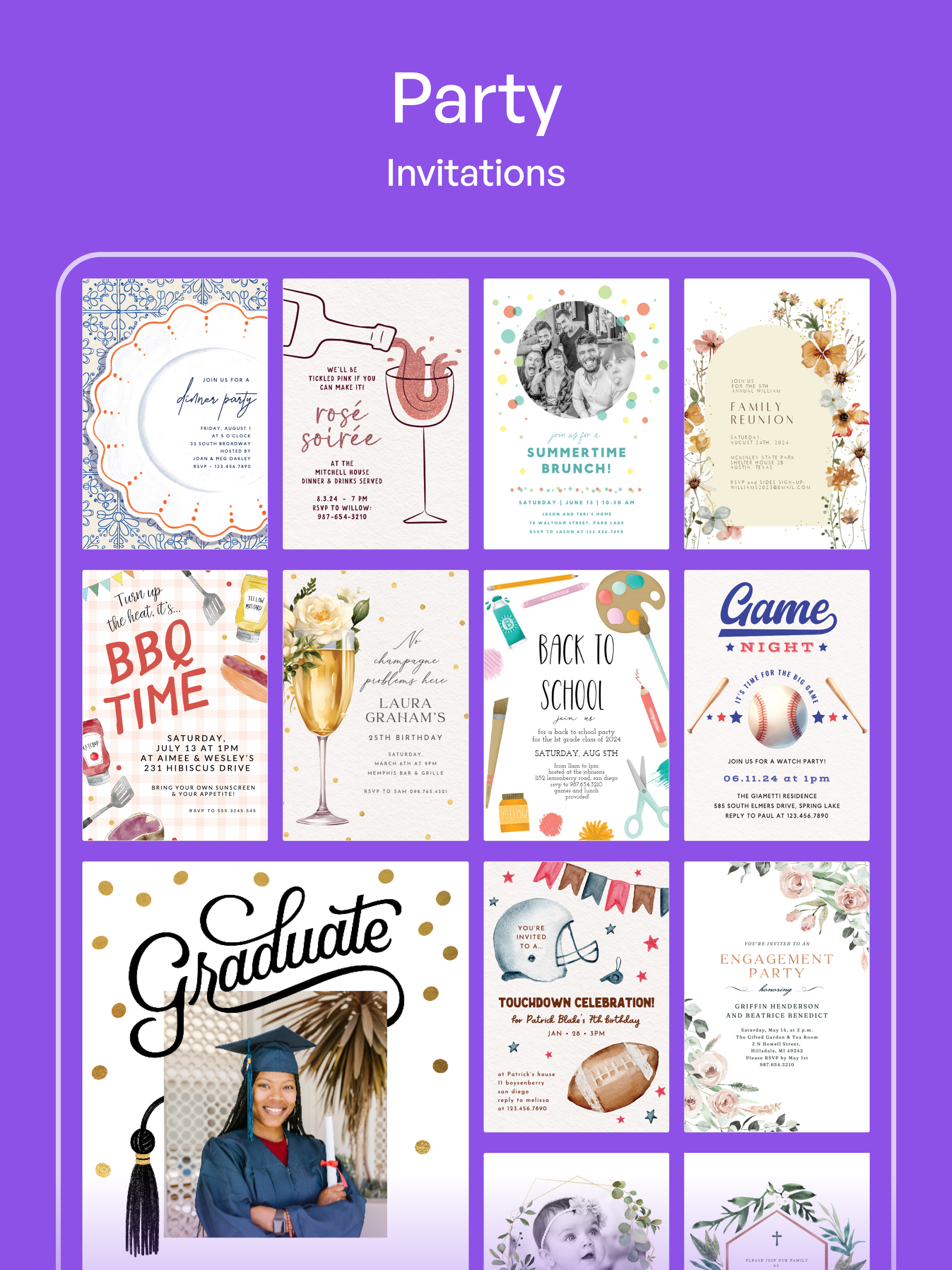 • Настройте свою открытку/ приглашение! Используйте настройки для редактирования текста, измените шрифты и выберите уникальные цветовые комбинации, которые наилучшим образом соответствуют вашему вкусу