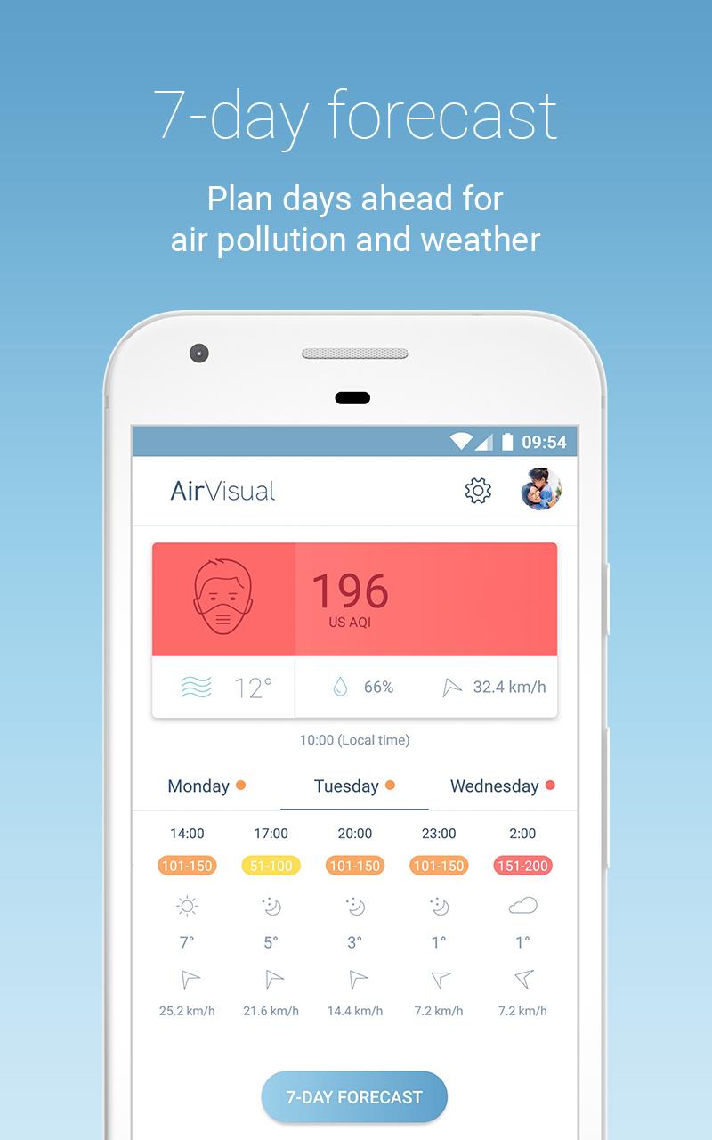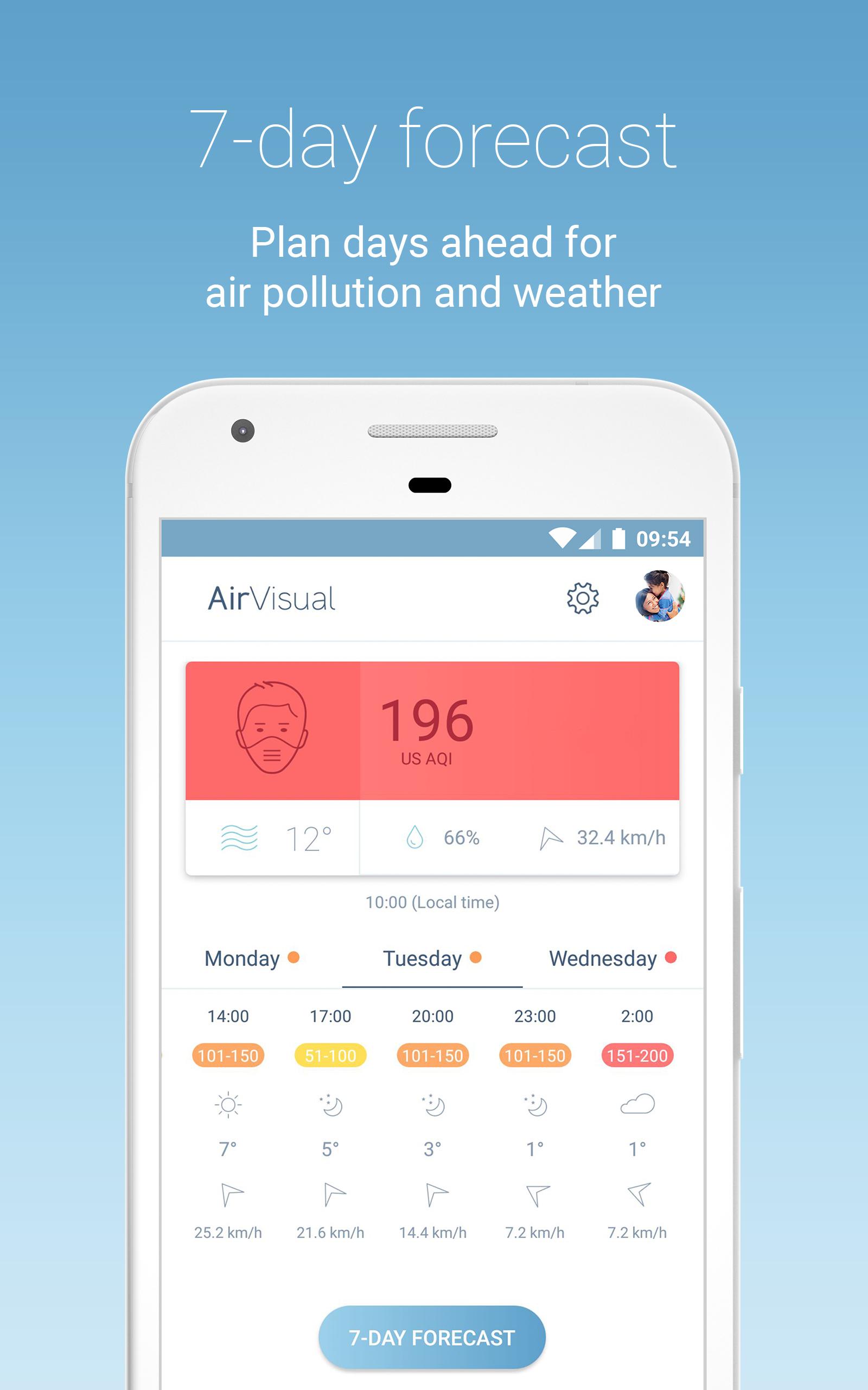 + Лучший прогноз погоды и загрязнения воздуха на 7 дней: теперь вы можете планировать активность на открытом воздухе на неделю вперед, исходя из соображений защиты здоровья. Прогнозы направления и скорости ветра помогут понять, как ветер влияет на загрязнение.