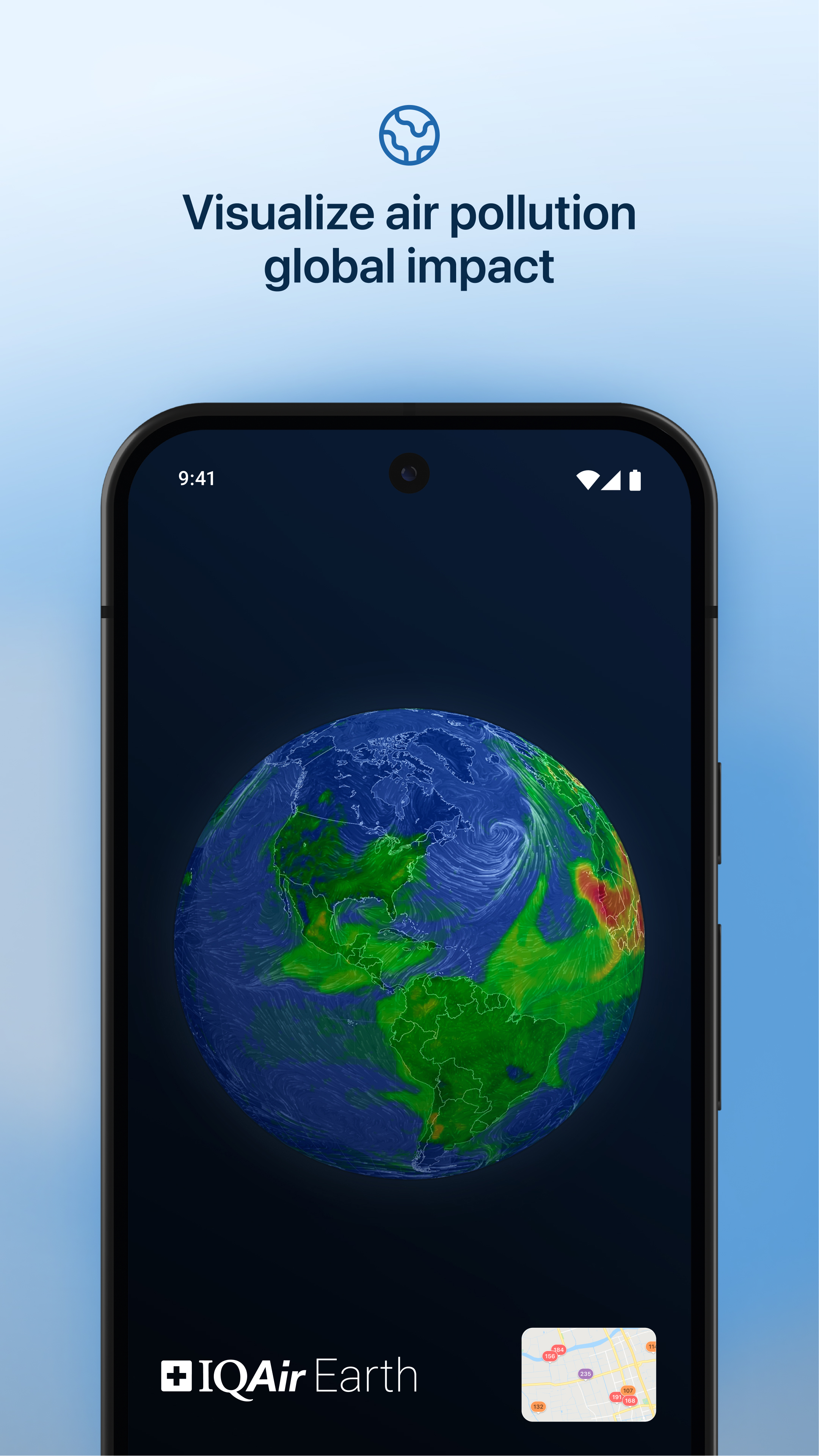 + Глобальные карты загрязнения: изучайте индексы загрязнения по всему миру в режиме реального времени по двухмерным панорамам и трехмерным тепловым картам от AirVisual Earth.