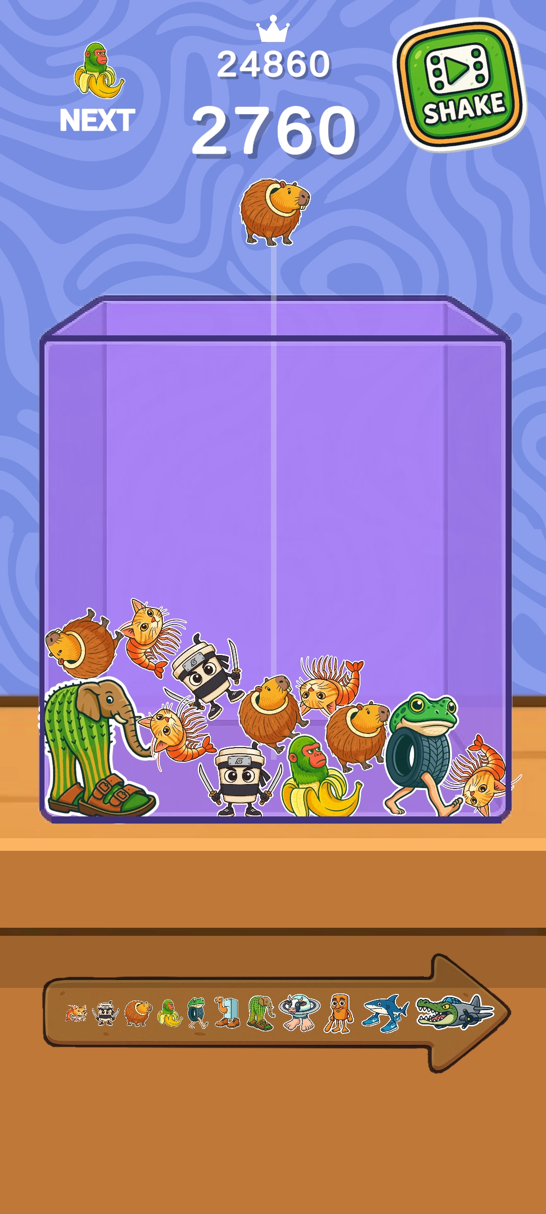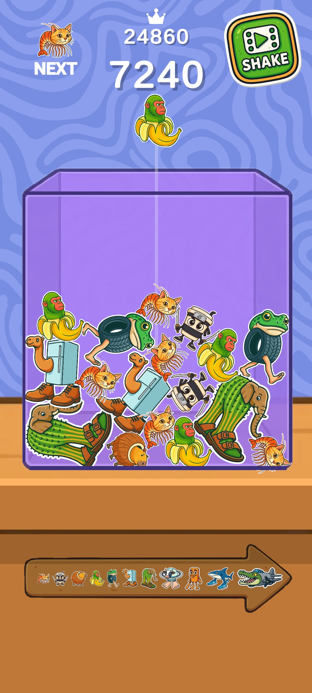 Начните с кучки странных, абсурдных созданий и объединяйте одинаковые пары, чтобы получить совершенно новых монстров. Каждое падение – сюрприз: выпадет ли вам кот на колесах, тостер-маг или загадочный Тунг Тунг? Каждое объединение приносит нового нелепого друга с мемным потенциалом.
