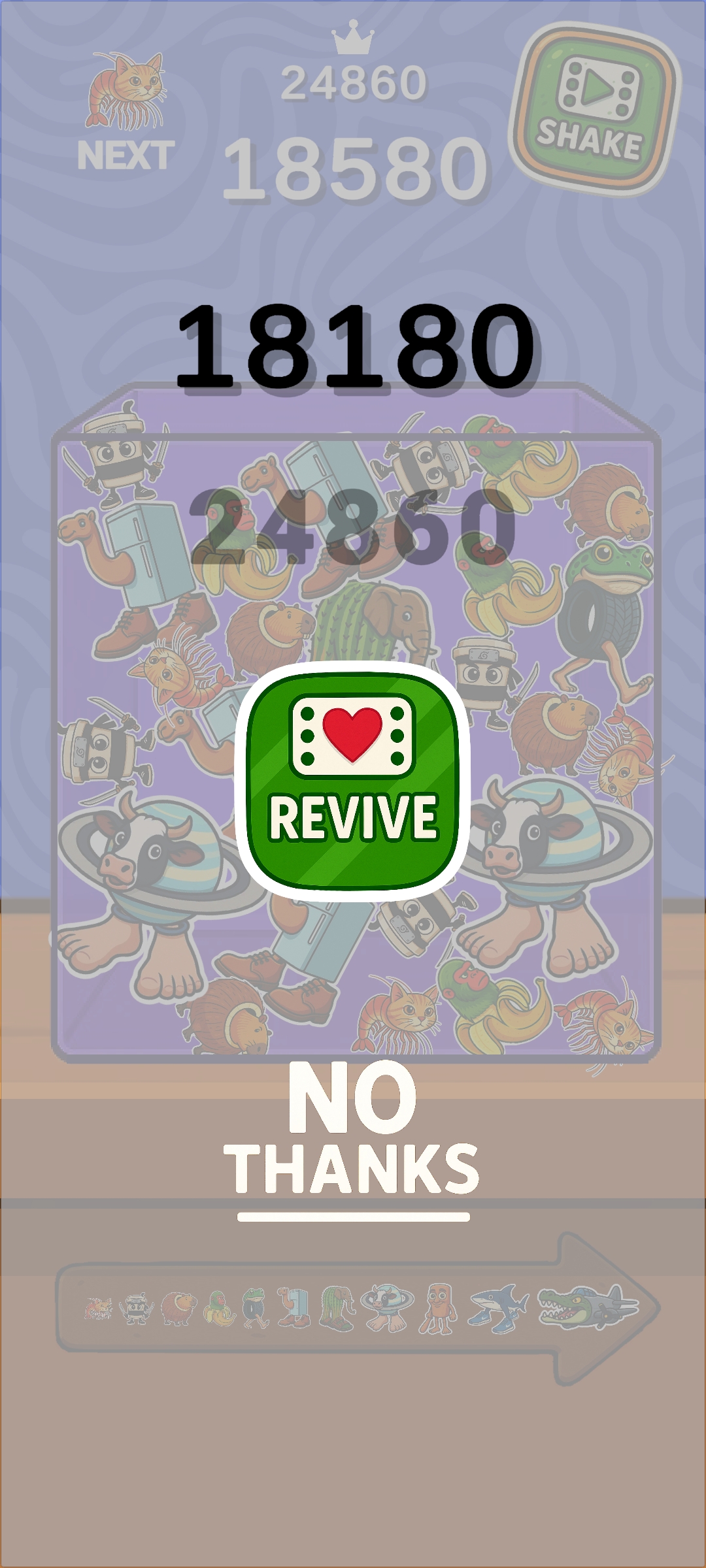 Перетаскивайте, бросайте и наблюдайте за развитием безумия. Когда два одинаковых существа сталкиваются – БАМ! – они превращаются во что-то еще более дикое. Звучит просто? Не тут-то было. Главная задача – не дать игровому полю переполниться этим "отбивом". Стратегия встречается с безумием.