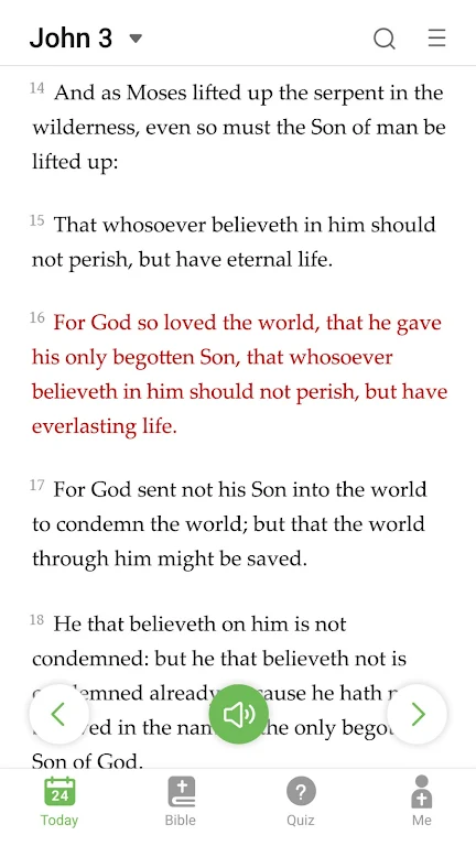 С помощью этого приложения Библии короля Иакова ( Приложение KJV Bible), люди могут изучать, читать, делиться и слушать Библию в версии короля Иакова. Это