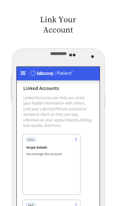 • Добавьте несовершеннолетних в свою учетную запись, чтобы управлять информацией об их лабораторных испытаниях.