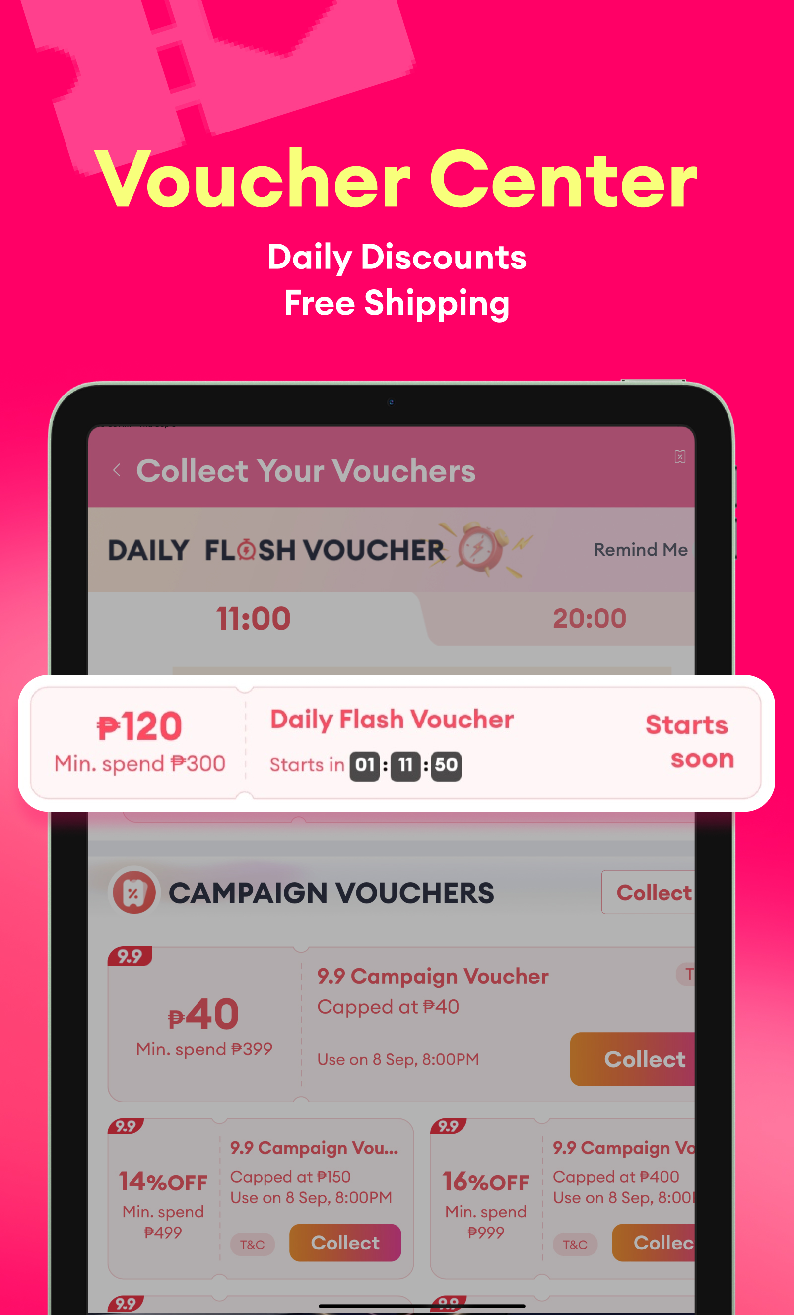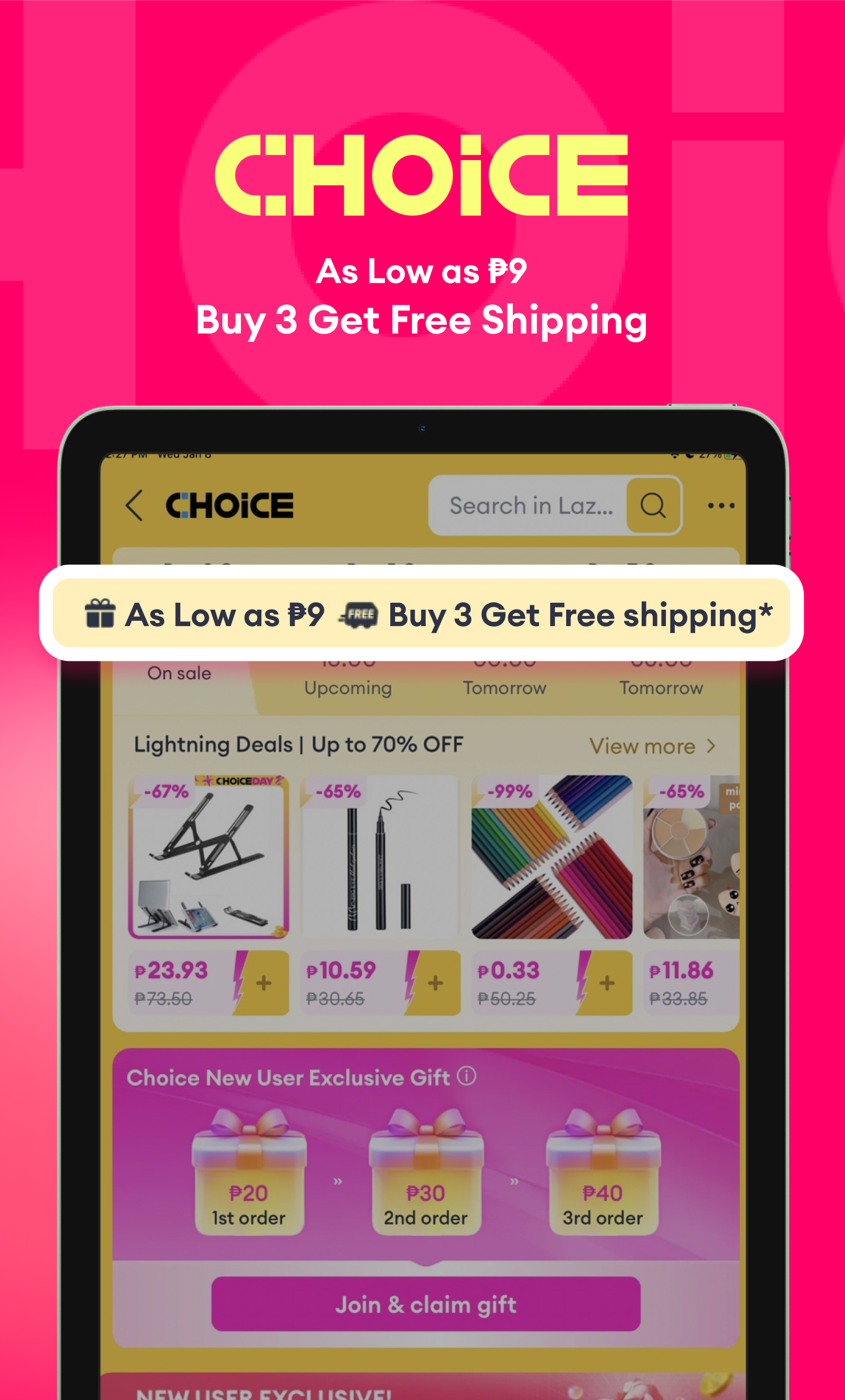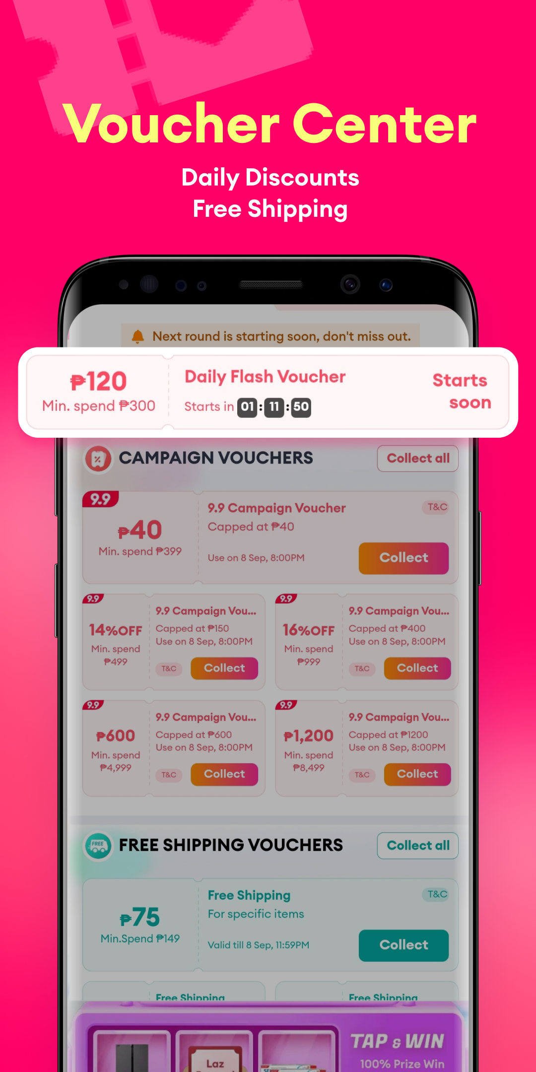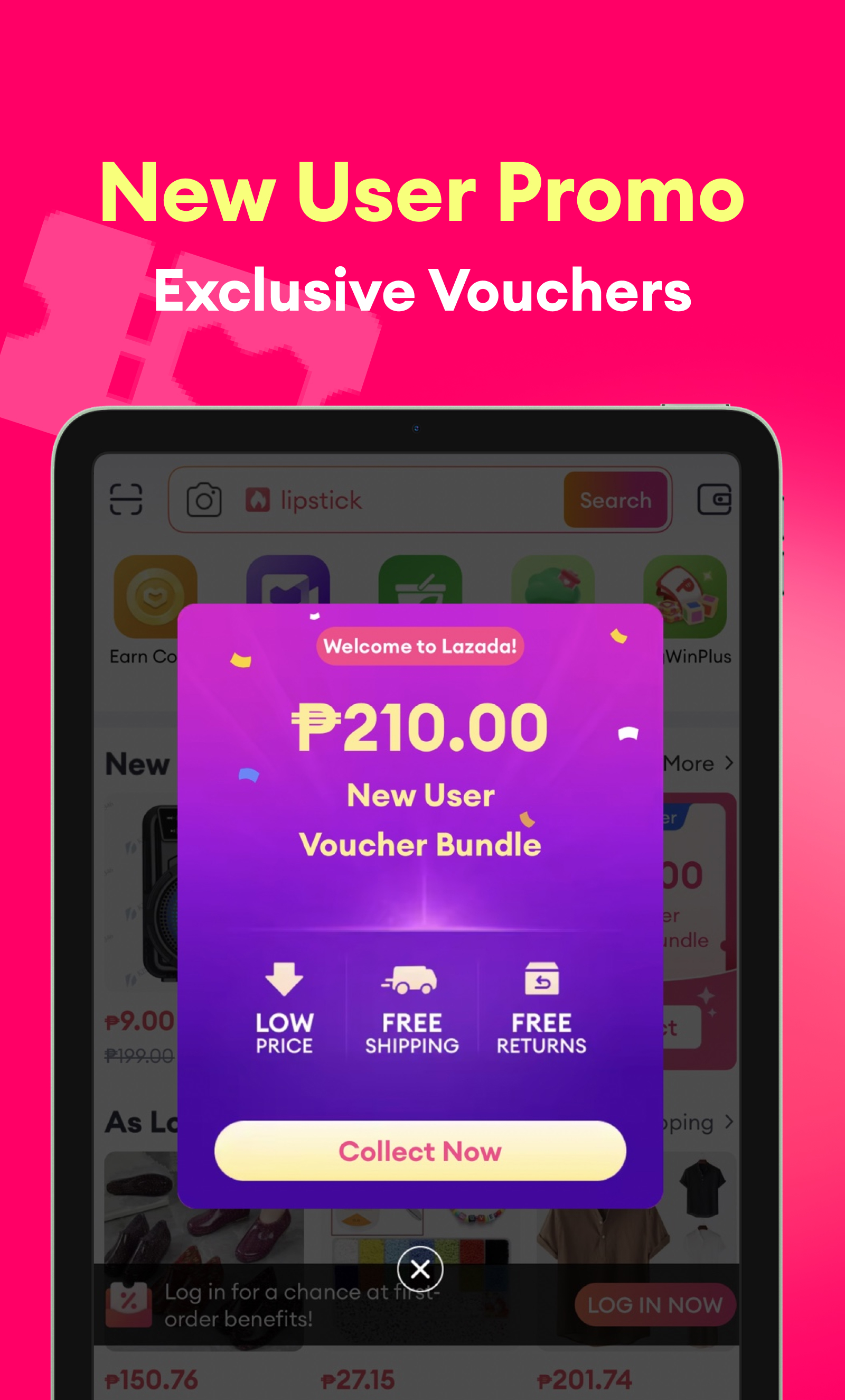 Получите эксклюзивные купоны на скидку при первой покупке*. Получайте монеты за ежедневную регистрацию и собирайте купоны от Lazada и продавцов каждый раз, когда пользуетесь приложением Lazada! *Действуют правила и условия.