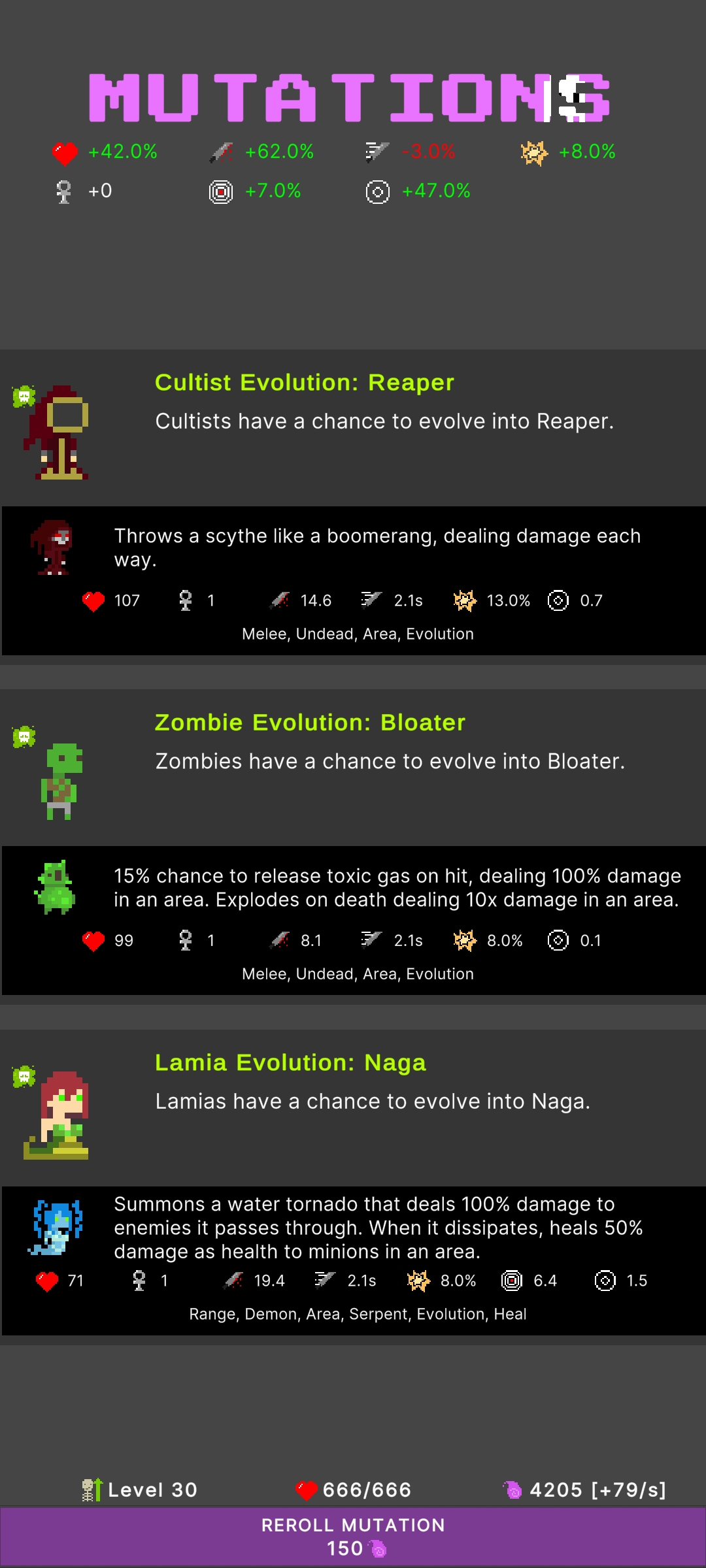2D-пиксельный автоматический рогалик с масштабными битвами, в которых вы вызываете, мутируете и развиваете миньонов, чтобы атаковать своих врагов и одержать победу!