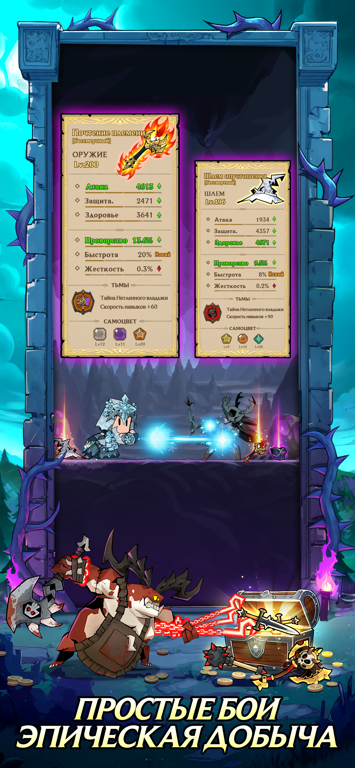 Окунитесь в мрачное фэнтези, сочетающее idle-геймплей с продуманной тактикой.