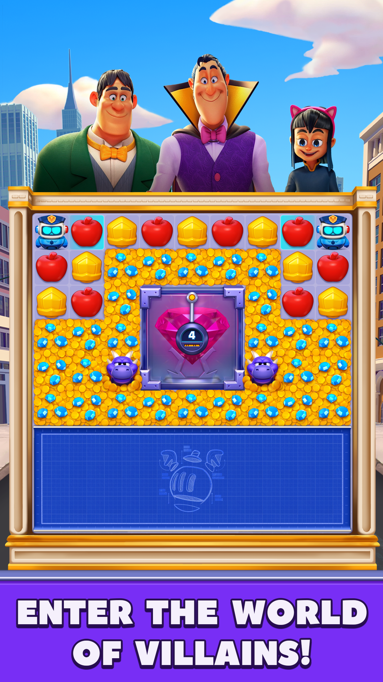 Прорывайтесь через слои препятствий с помощью умных совпадений и используйте мощные комбо в игре, где каждый уровень - это новое ограбление!