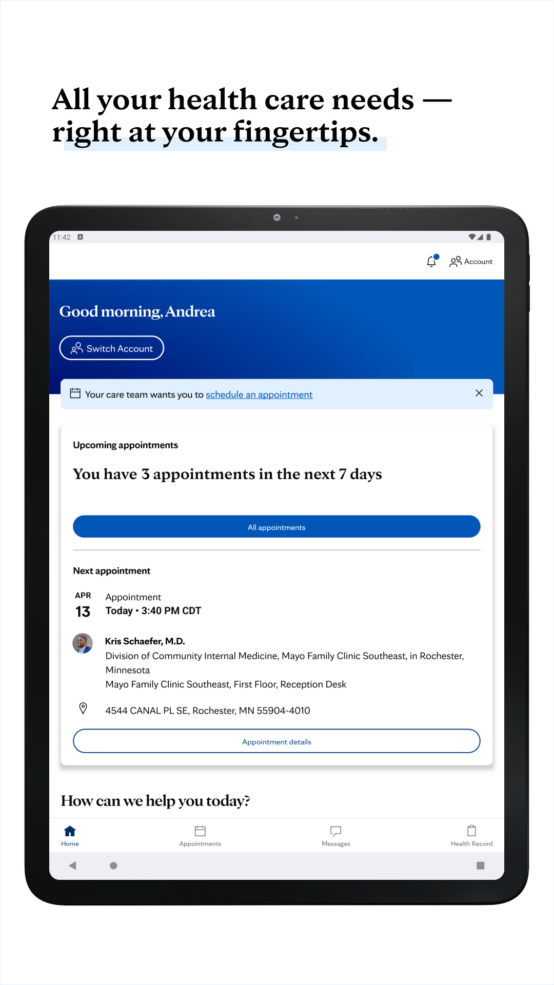 Приложение Mayo Clinic предоставляет практичные и полезные инструменты для управления своим здоровьем на ходу. Ваше путешествие по уходу теперь более плавное, безопасное и доступное. Отслеживайте информацию о своем здоровье, назначайте встречи и заполняйте анкеты регистрации в удобное для вас время. Вы получите легкий доступ к расписанию встреч, важным напоминаниям, картам кампуса и медицинским записям.