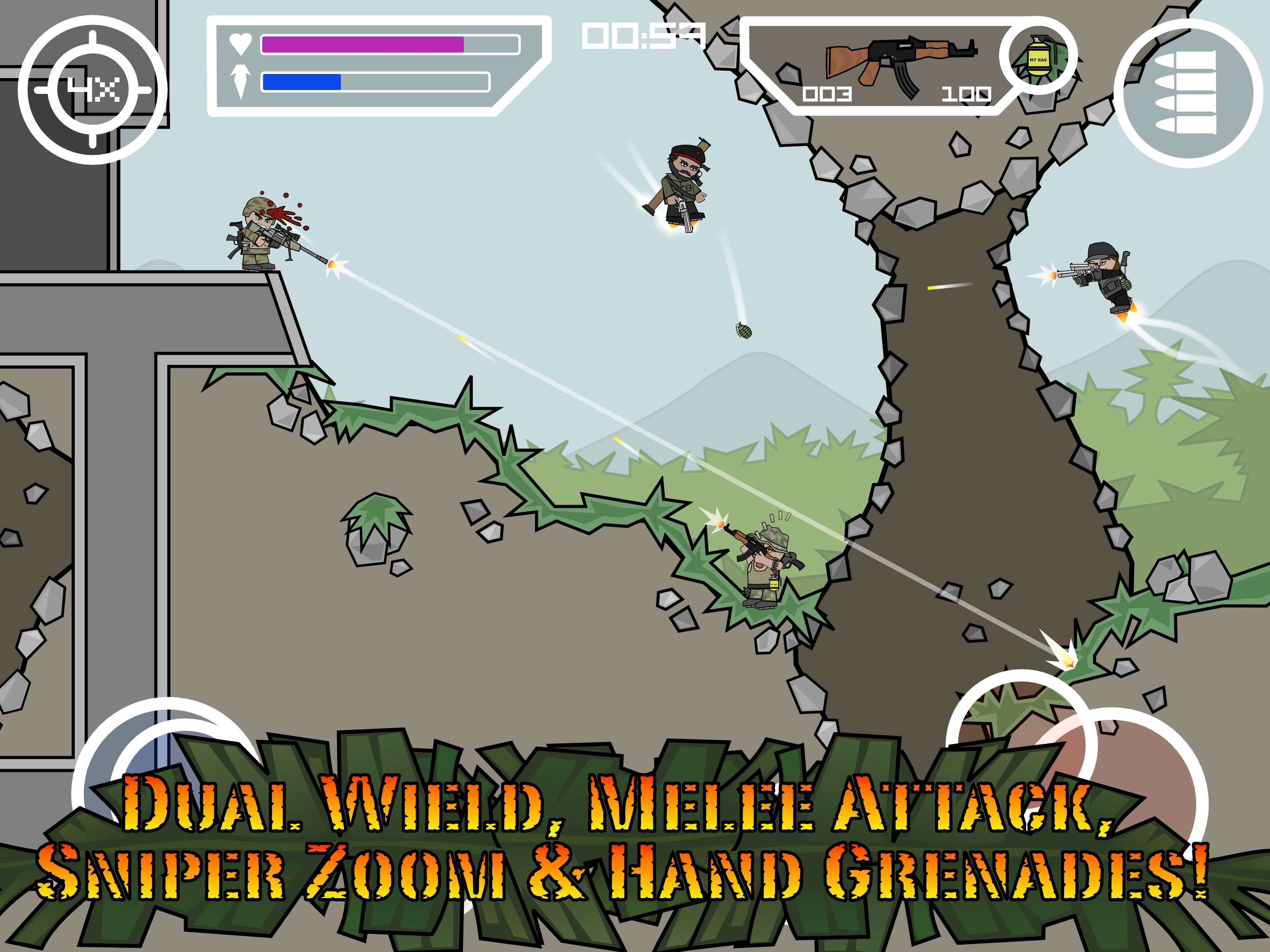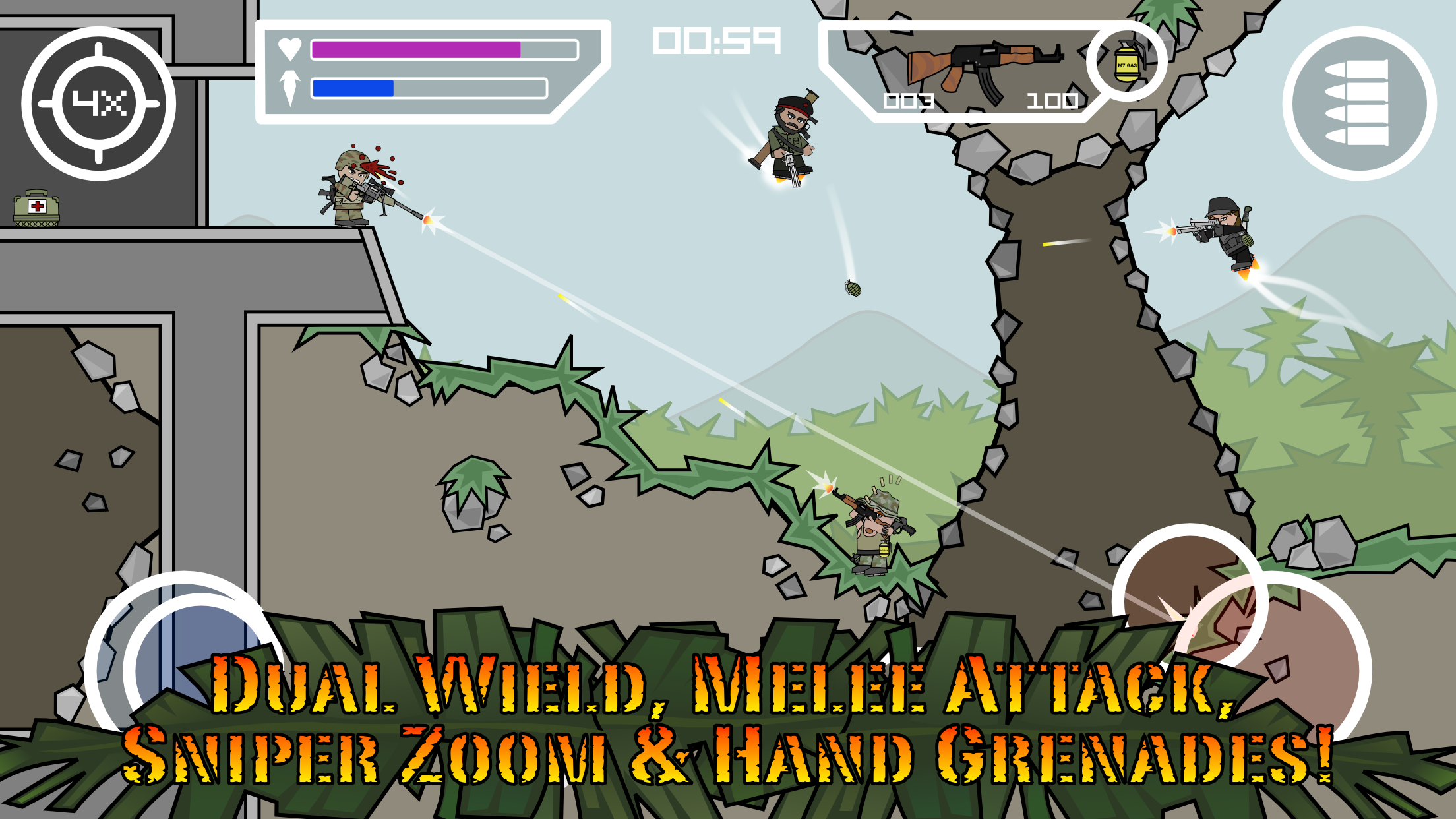 Mini Militia (Classic) вернулась по многочисленным просьбам и под первоначальным руководством, Appsomniacs перезапустила "Classic" версию Mini Militia Doodle Army 2 (DA2) с возвращением режимов игры по Wi-Fi LAN!