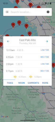- Найдите ближайшие к вам места, когда приложение откроется, чтобы вы могли узнать время прилива, где бы вы ни находились!